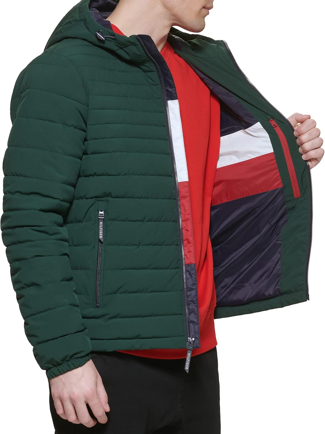 Познакомьтесь с новейшей моделью многослойной одежды в вашем гардеробе - складной курткой с капюшоном из эластичного полиэстера от Tommy Hilfiger.