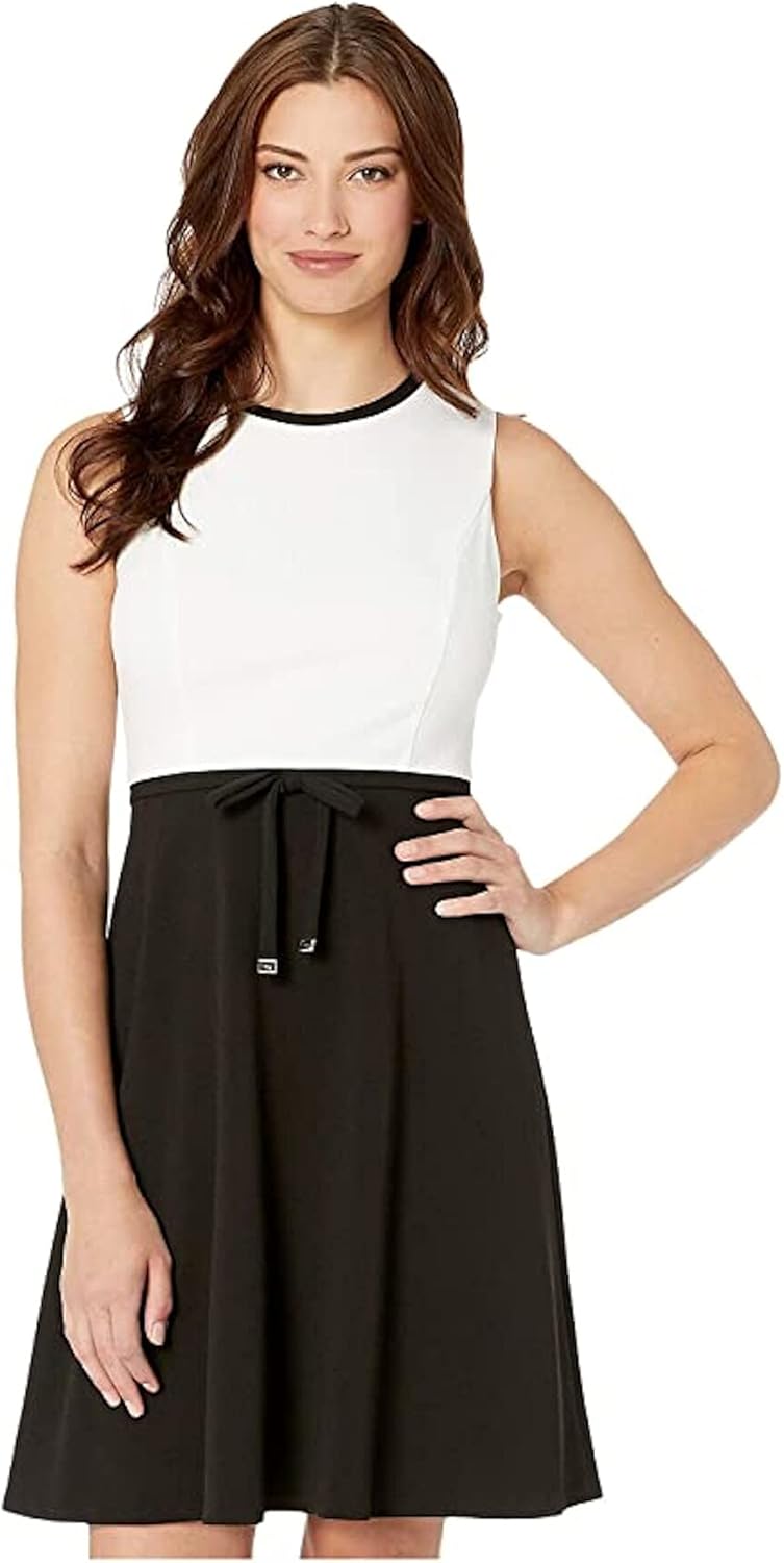 Галстук с логотипом на конце добавляет яркий шик и очарование облегающему платью Tommy Hilfiger из контрастного крепа-скуба. Примерный рост модели - 5 футов 9 дюймов, на ней 4-й размер. Длина до колена; примерная длина: 36 1/8 дюйма от центра спины до подола. Длина указана для размера 4 и варьируется на 1/4 дюйма для каждого размера. Круглый вырез горловины; приталенный и расклешенный силуэт Скрытая молния сзади с застежкой на крючок и глазок