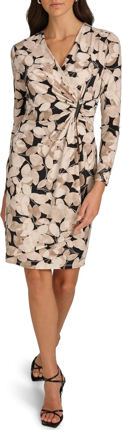 Это женское платье Calvin Klein - облегающее платье с принтом и длинным рукавом.