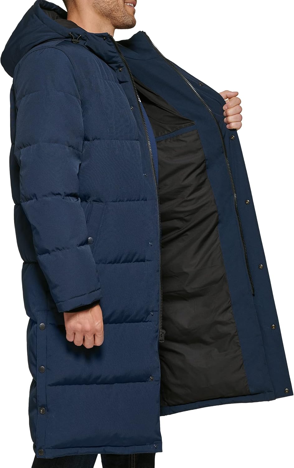 ФУНКЦИОНАЛЬНОСТЬ: Застежка-молния по центру спереди с накладкой на кнопку, два нижних прорезных кармана. СТИЛЬНЫЕ ОСОБЕННОСТИ: Логотип Levi's на левой стороне груди, горизонтальные стеганые панели, пришитый капюшон. УТЕПЛЯЮЩИЕ СВОЙСТВА: Ткань Arctic отталкивает воду, а внутренний утеплитель из искусственного пуха сохраняет тепло тела; удлиненный силуэт согревает с головы до ног.