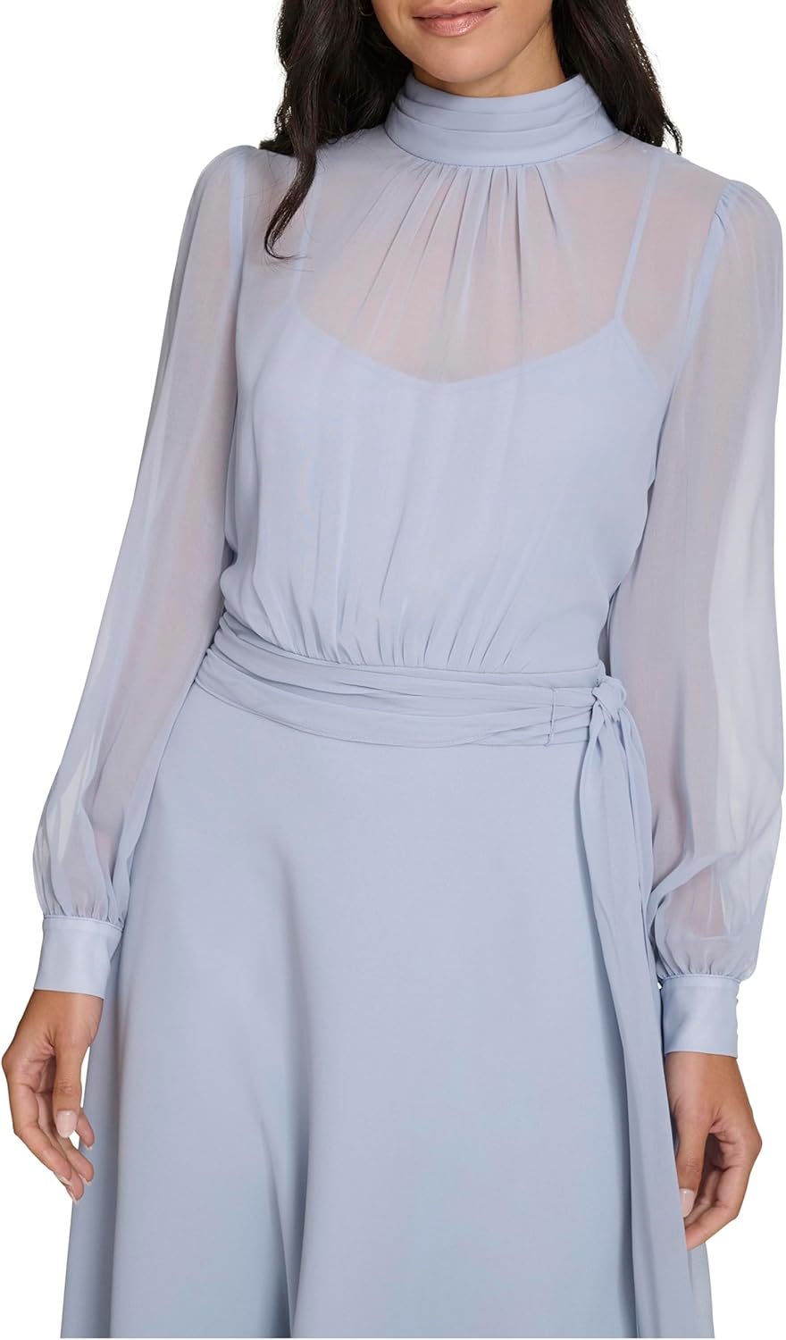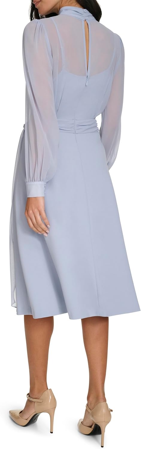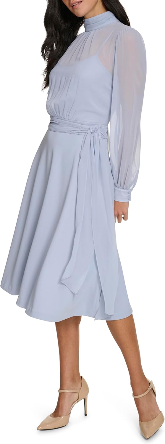 Это женское платье Calvin Klein - миди, деловое, с длинным рукавом.