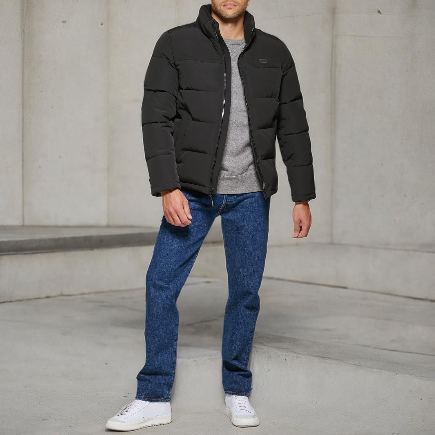 Эта куртка-пуховик с воротником-стойкой обеспечит идеальное тепло, а водонепроницаемая ткань защитит вас от холода. Печать «Levi's» на воротнике добавит стильности.