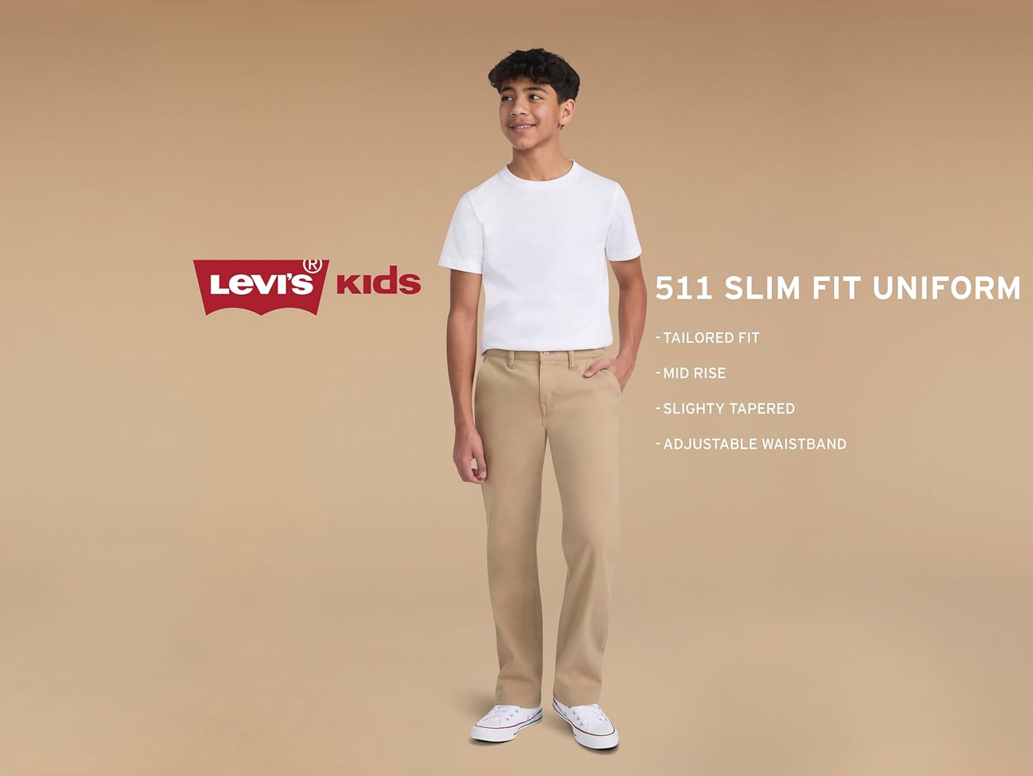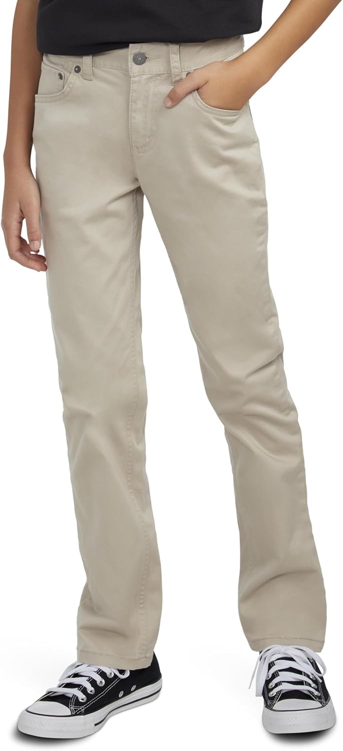 ・ЛЕГЕНДАРНОЕ КАЧЕСТВО: Изготовлены из супермягкого замшевого сатина с добавлением эластичности для максимальной подвижности и комфорта. ・СОЗДАНО ДЛЯ КОМФОРТА: Регулируемый пояс обеспечивает индивидуальную посадку и комфорт по мере роста ребенка. ・ФИРМЕННЫЙ дизайн Levi's с 5 карманами. ・СОВРЕМЕННЫЙ ДИЗАЙН: облегающий крой со слегка зауженными штанинами. ・Для детей старшего возраста (размеры 8-20) застегивается спереди на пуговицы. Для детей младшего возраста застегивается спереди на крючок и перекладину.