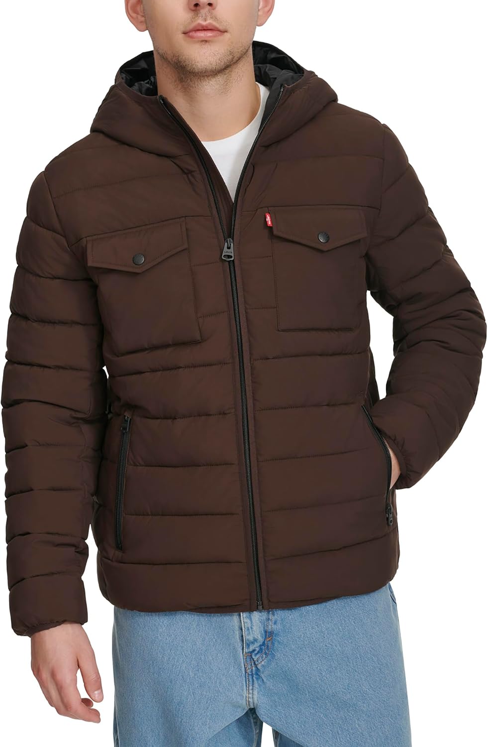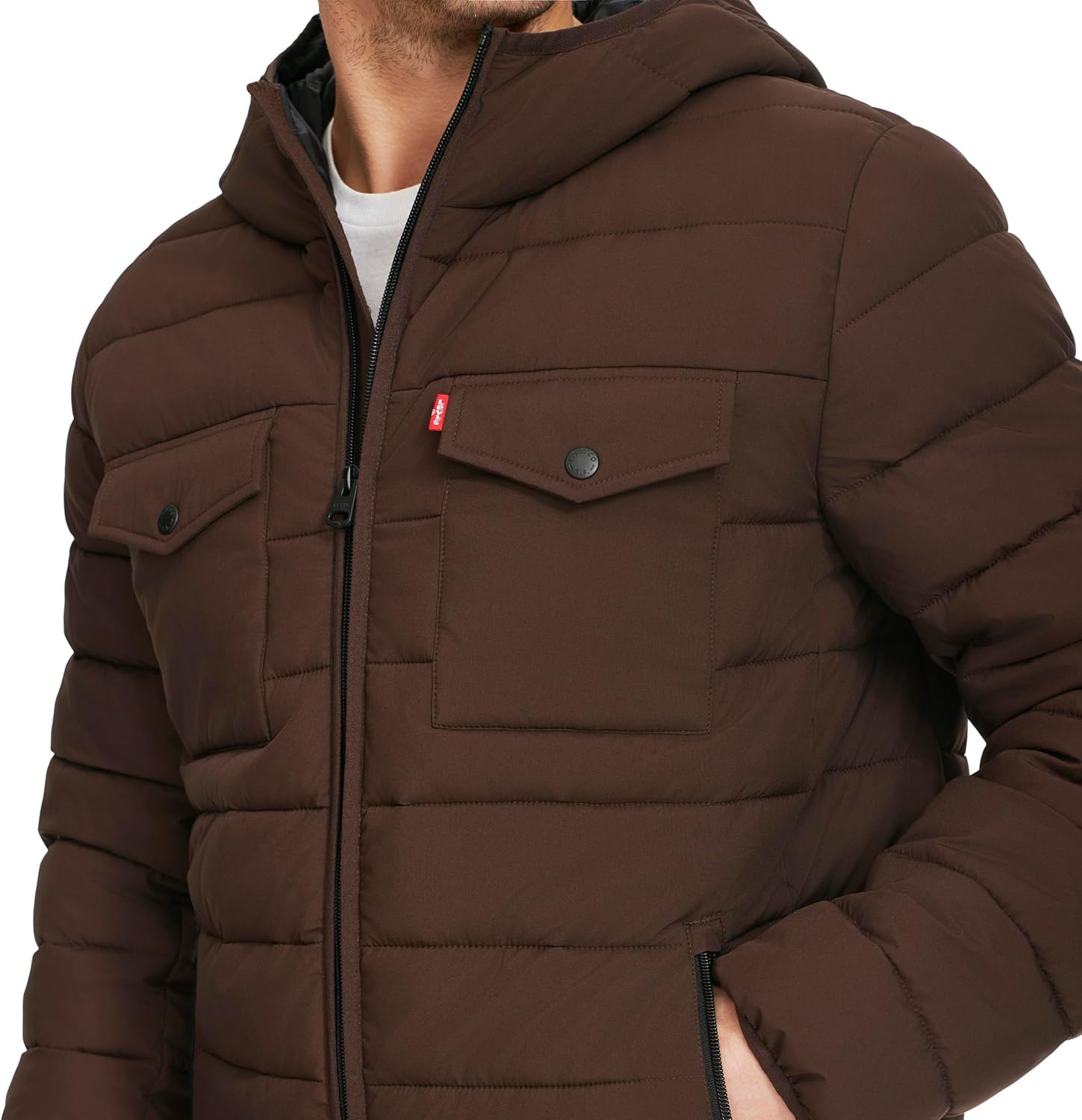 Водонепроницаемая куртка-пуховик Levi's Performance Stretch с капюшоном, Chocolate Brown