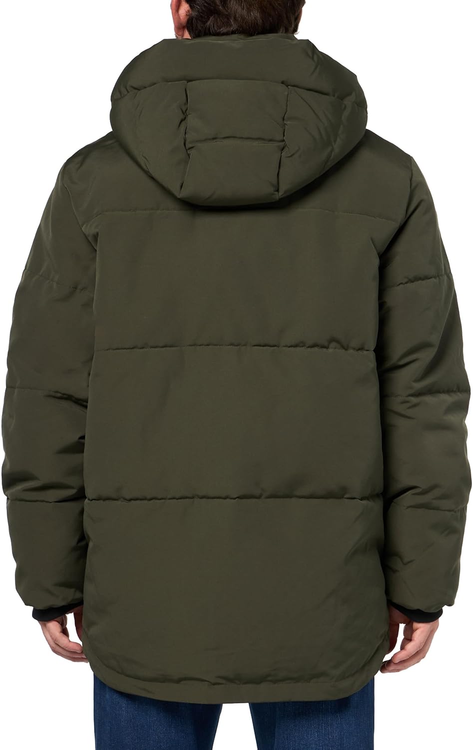 Классический стиль пуховика: мужская стеганая куртка-пуховик с культовым брендингом Levi's выглядит стильно. Теплоизоляция: наполнитель из полиэстера и трикотажные манжеты этой парки с капюшоном обеспечивают защиту от холодной погоды. Регулируемая посадка: мужская куртка оснащена капюшоном и подолом на завязках, что позволяет индивидуально регулировать посадку. Надежная застежка: скрытая центральная молния спереди с накладной кнопкой обеспечивает защиту от ветра. Информация о размерах: На модели носит размер M.