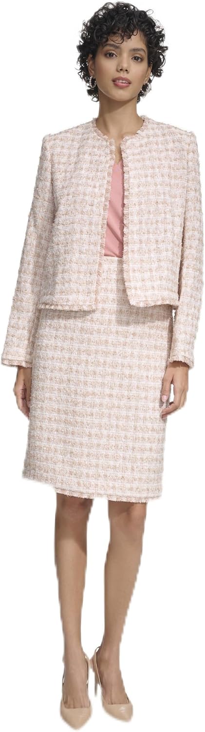 Женский твидовый пиджак Calvin Klein с открытым передом, Pristine Multi