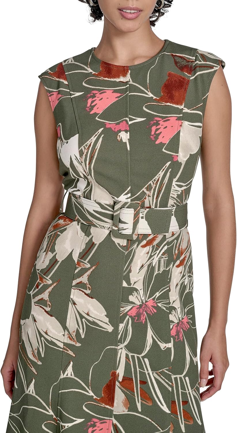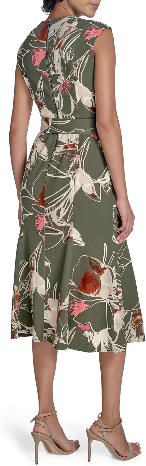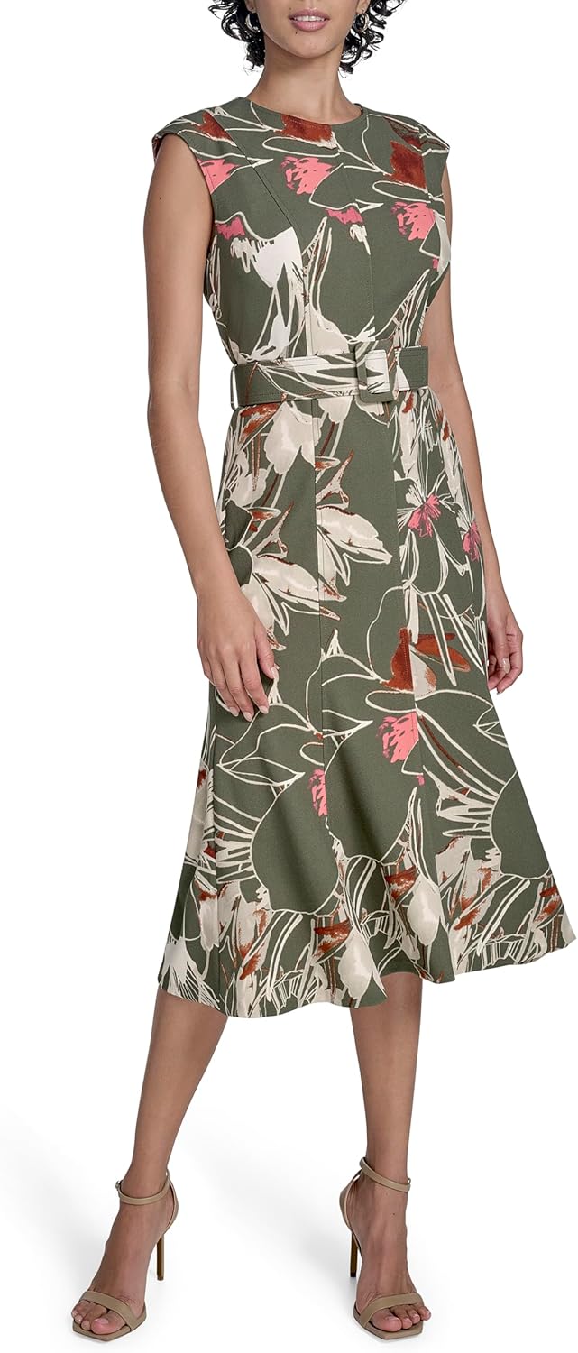 Женское платье-миди Calvin Klein из крепа с расклешенным лифом, Caper Multi