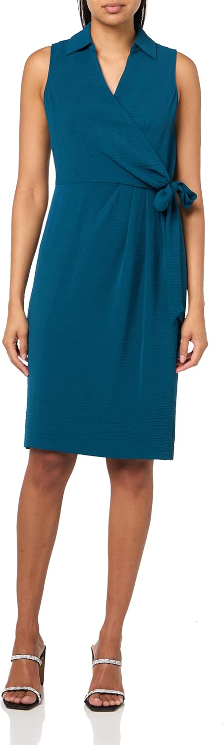 Это женское платье Calvin Klein - легкое, эластичное, с воротником и завязками по бокам.
