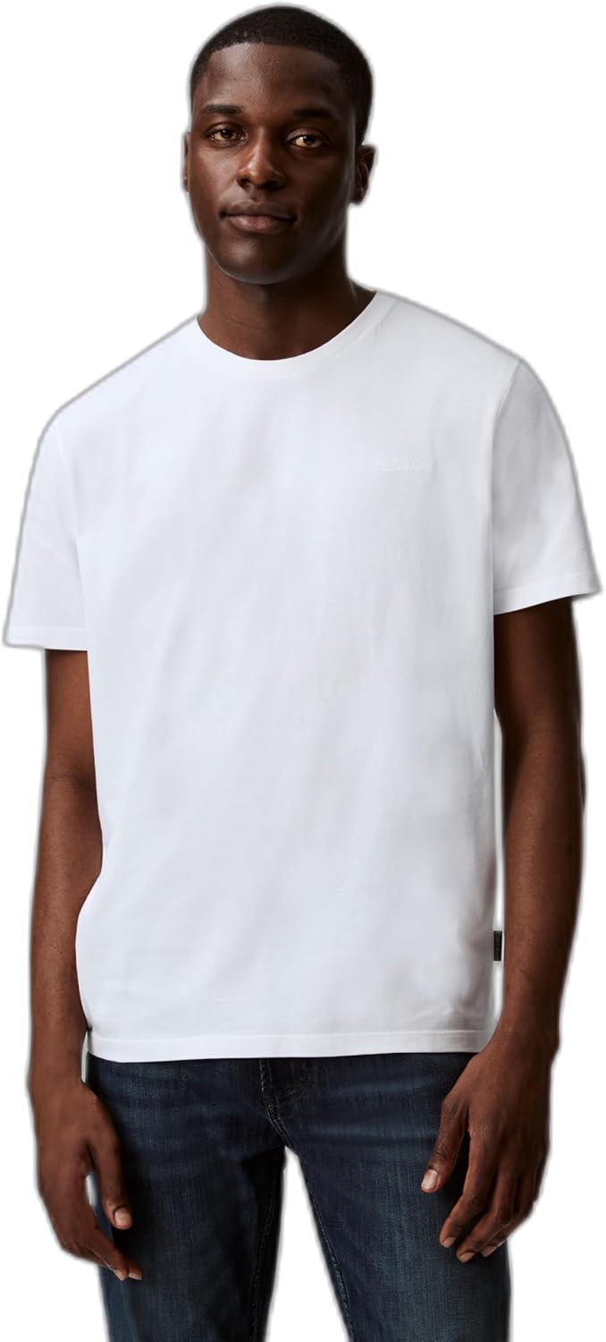 Эта мужская футболка Calvin Klein с круглым вырезом и свободным силуэтом украшена вышитым на груди культовым логотипом CK, что придает ей универсальный и классический вид.