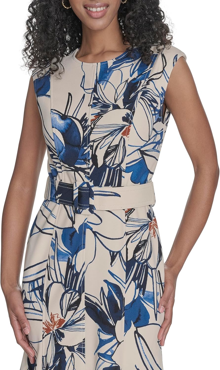 Женское платье Calvin Klein Aline с поясом, Antique White Multi