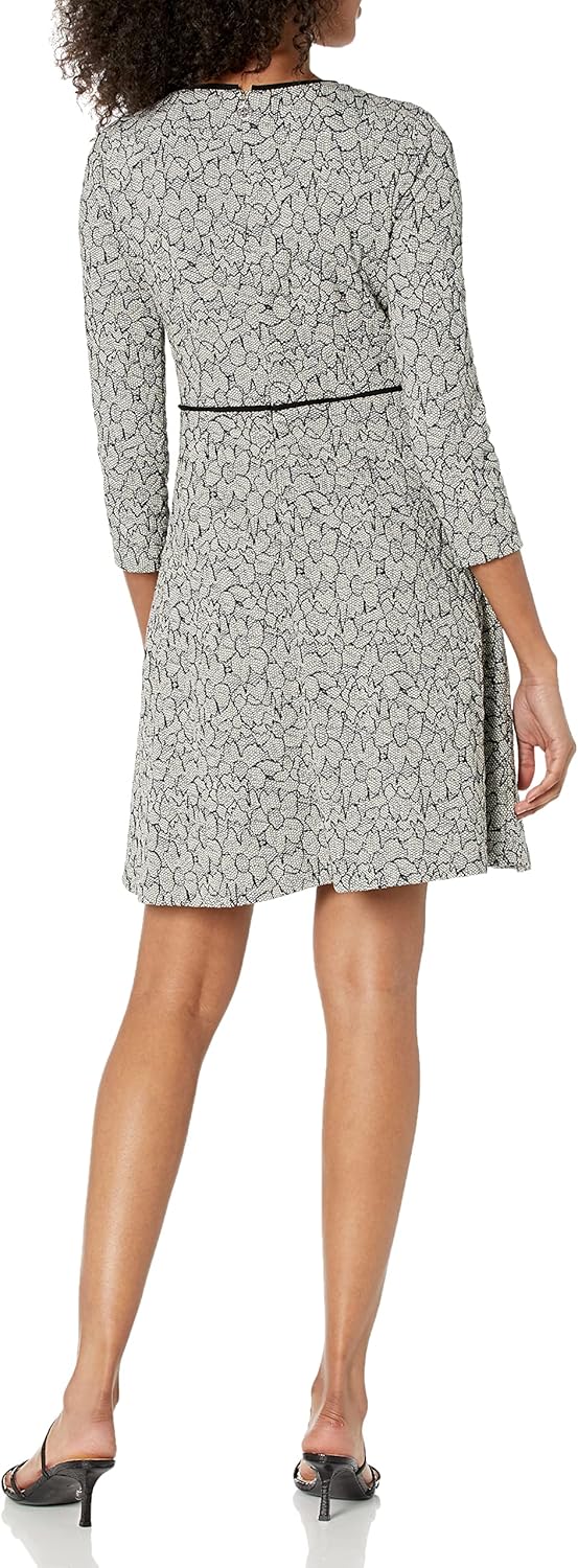 Это облегающее платье с круглым вырезом и рукавами 3/4 выполнено из текстурированного трикотажа, удобного и легкого в носке.