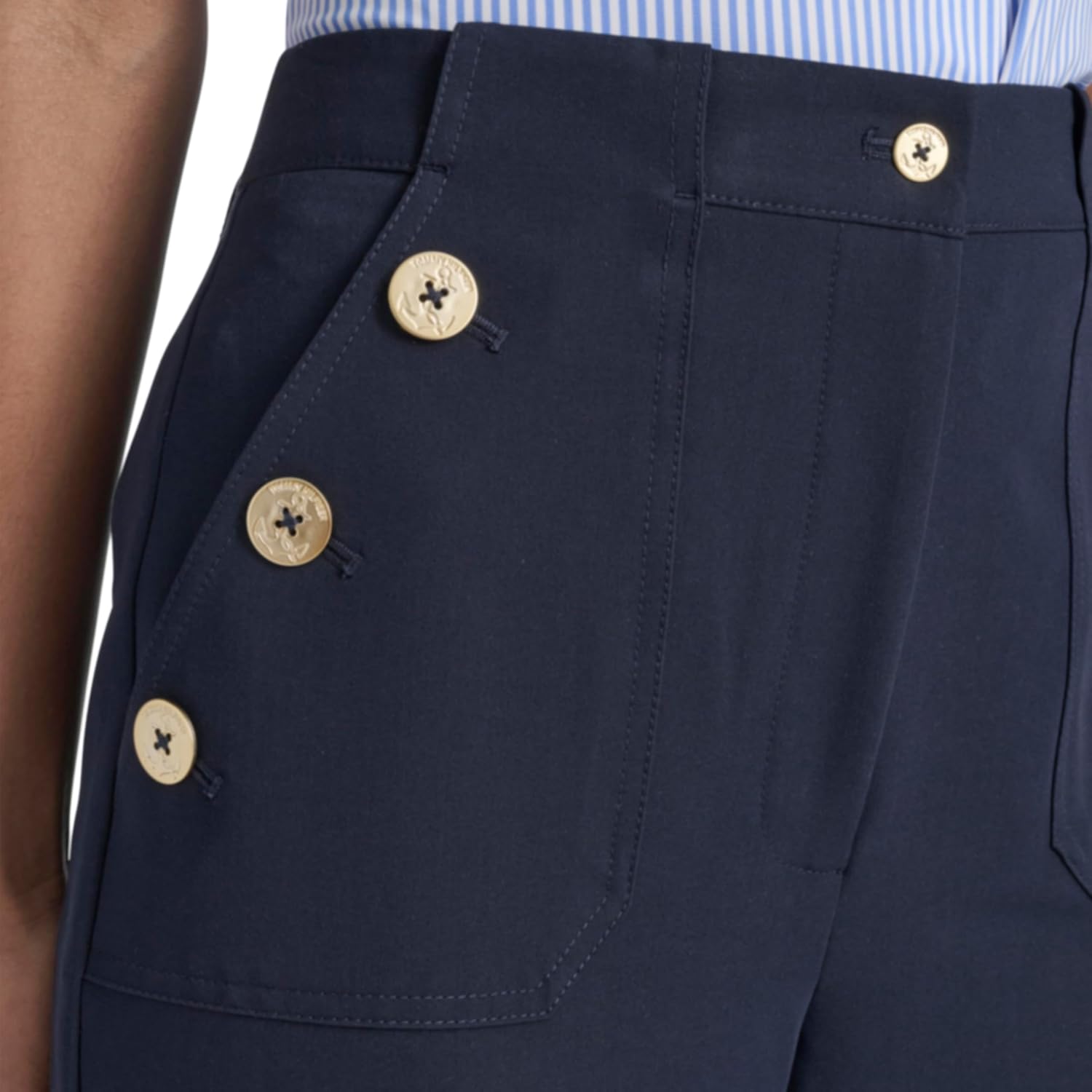 Эти женские матросские брюки Tommy Hilfiger - это однотонные широкие брюки в матросском стиле с пуговицами.