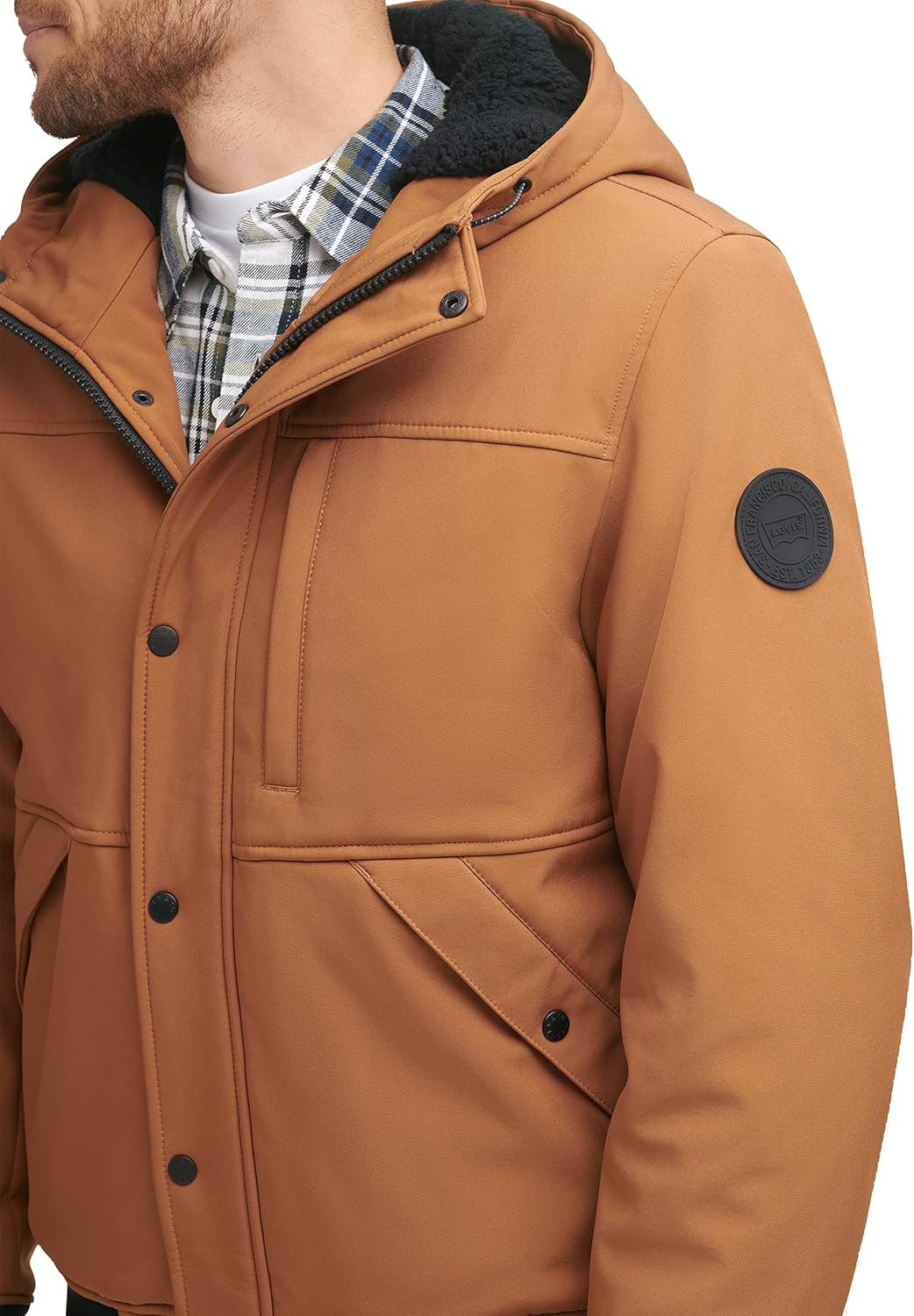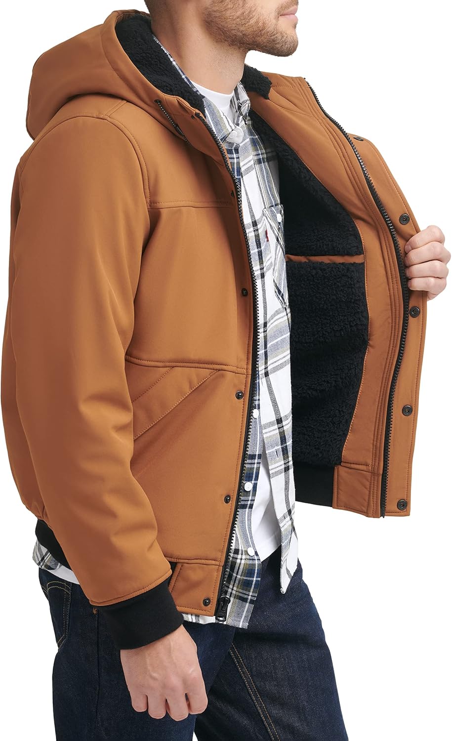 Мужская куртка-бомбер Levi's Soft Shell с подкладкой из шерпы и капюшоном, Brown