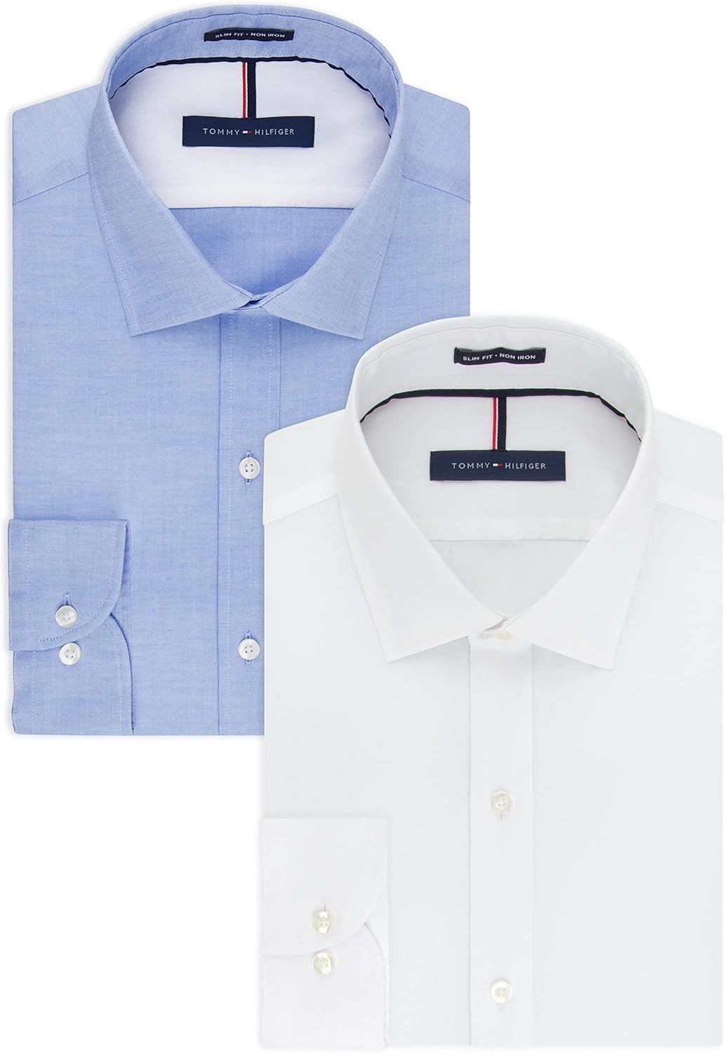 Мужская рубашка Tommy Hilfiger Slim Fit Non Iron Solid - эксклюзивно на Amazon, White/Blue