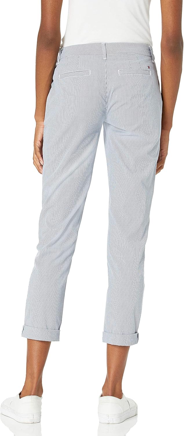 Стильный крой: брюки прямого силуэта, укороченные по щиколотку, с манжетами внизу для непринужденного, но элегантного образа.