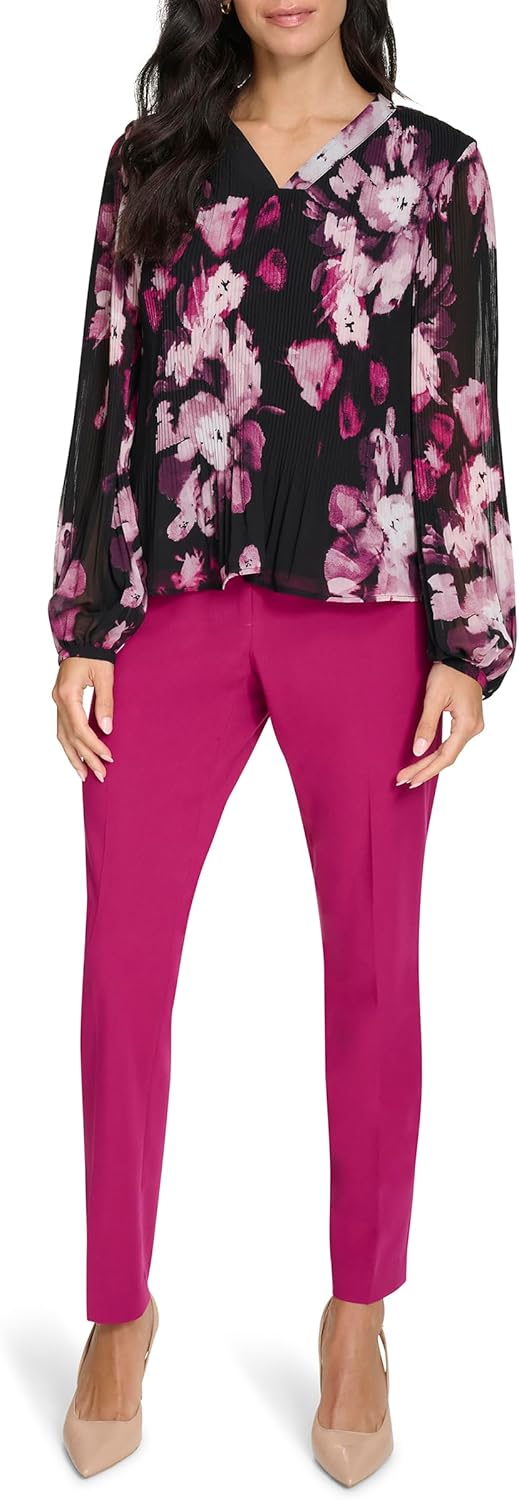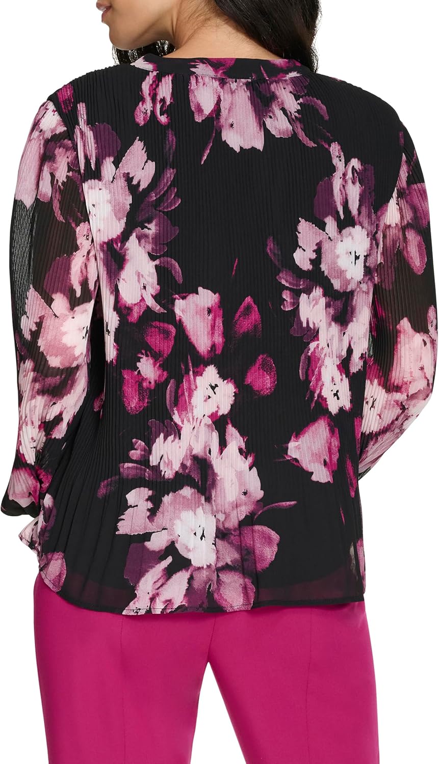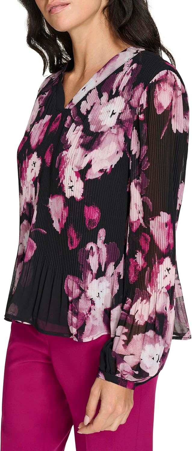 Женский плиссированный топ Calvin Klein с длинными рукавами, Black Multi