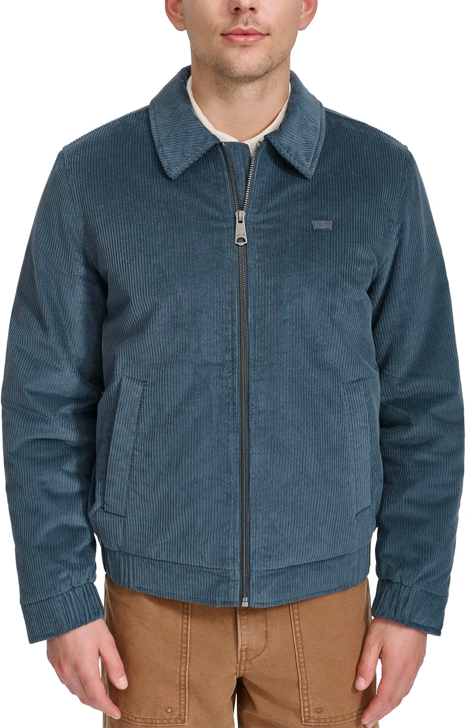 Практичное хранение: два нижних прорезных кармана для надежного хранения необходимых вещей, которые всегда будут под рукой. Ткань премиум-класса: изготовлена из мягкого, прочного хлопкового вельвета, обеспечивающего текстуру, комфорт и долговечность. Эластичный крой: эластичные манжеты и подол обеспечивают плотную регулируемую посадку, повышая комфорт и тепло. Фирменная деталь: легендарный логотип Levi's на груди добавляет отличительный штрих узнаваемости и стиля бренда. Надежная застежка: застежка-молния по центру спереди обеспечивает элегантный, современный вид и удобство при надевании и снятии.