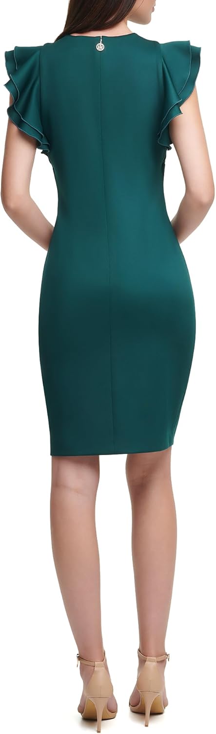 Это женское платье Tommy Hilfiger Plus Size с короткими рукавами-крылышками из ткани Scuba.