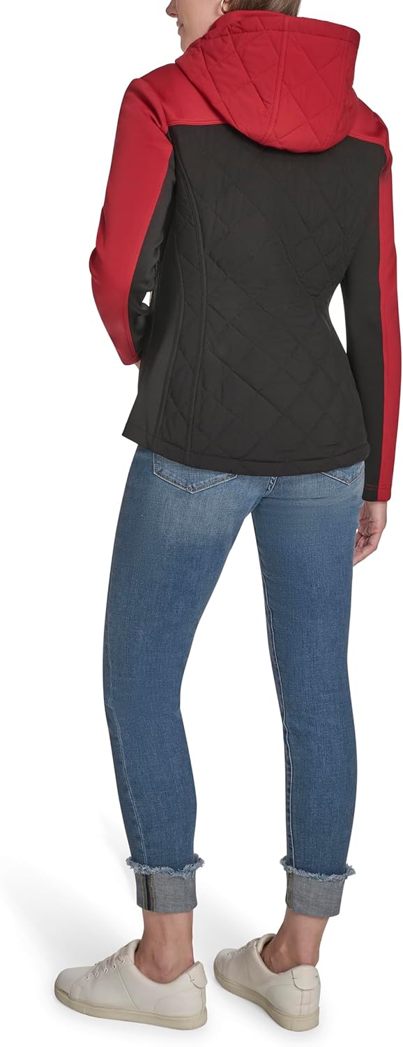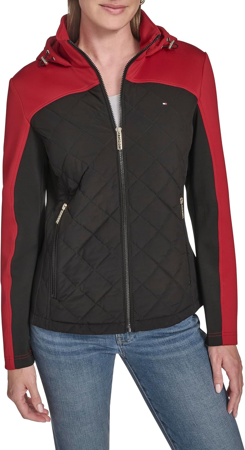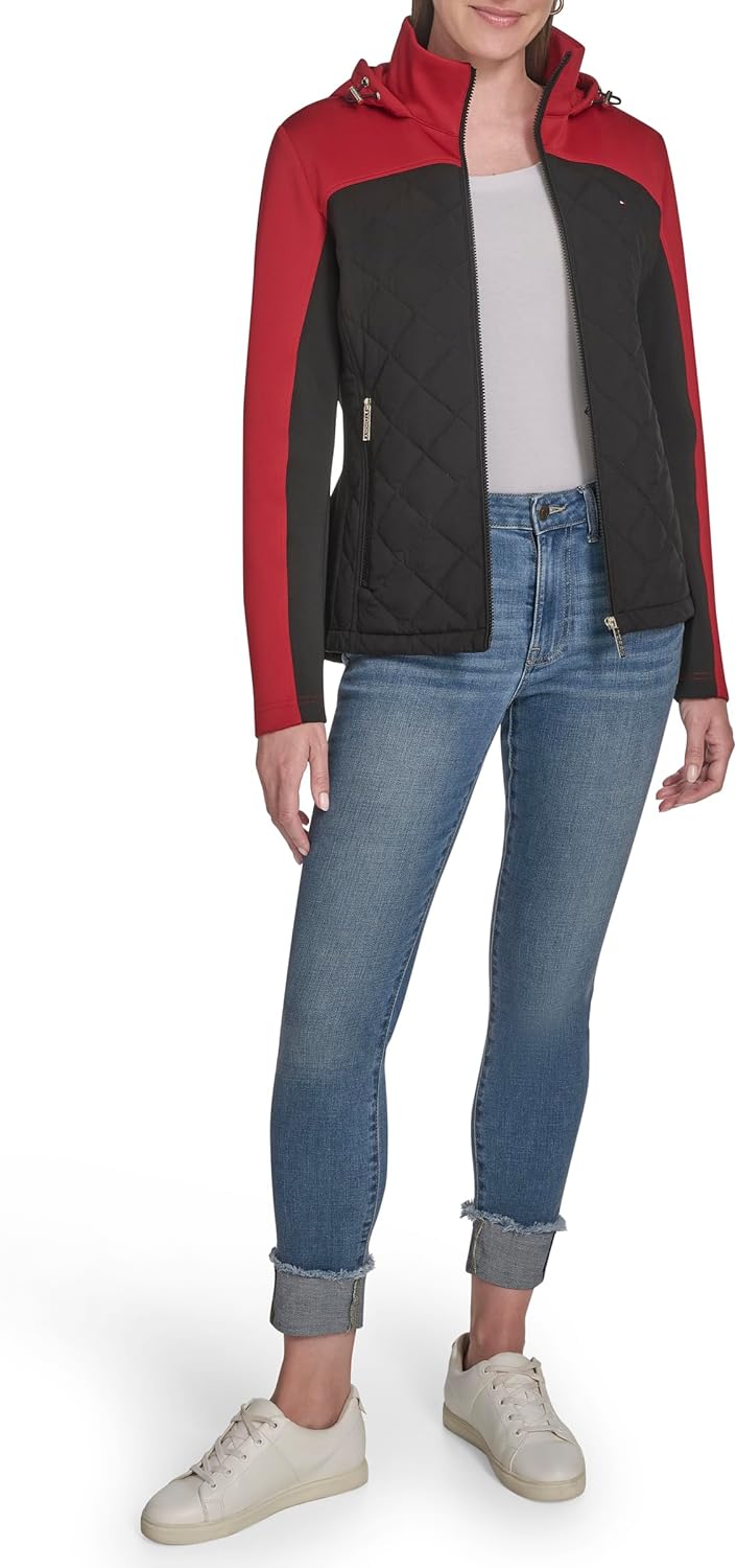 Эта женская спортивная стеганая куртка Tommy Hilfiger Scuba Outerwear представляет собой стеганую куртку с капюшоном в стиле «цветной блок».