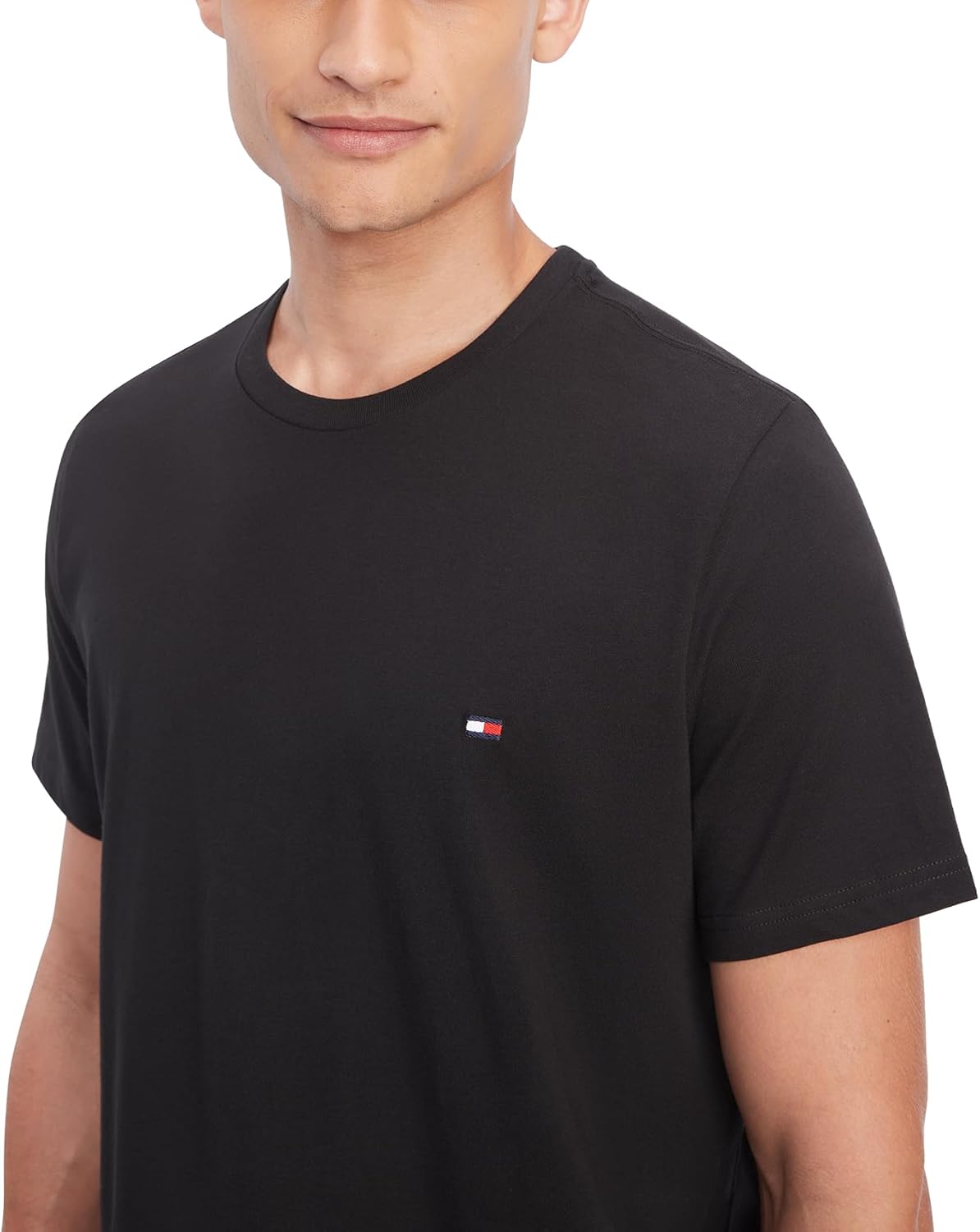 Классическая мужская футболка Tommy Hilfiger с круглым вырезом, выполненная в лаконичном черном цвете. Идеальный выбор для создания стильного и комфортного образа на каждый день.