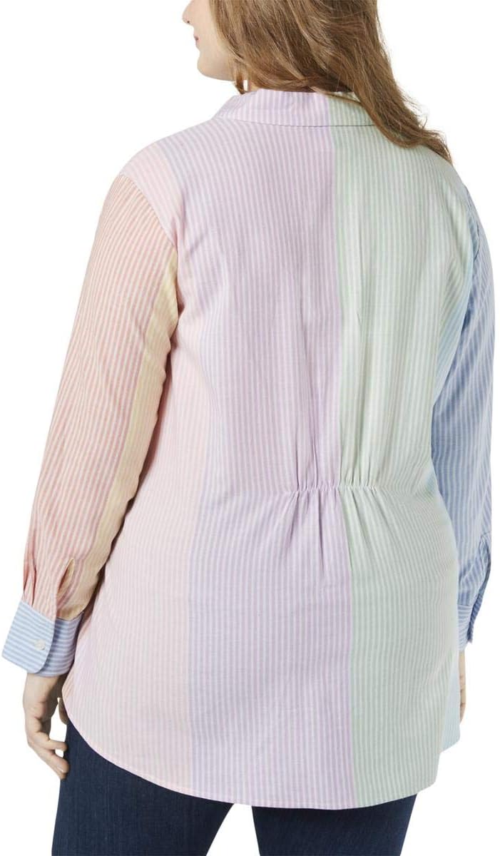 Особенности: рубашка на пуговицах, с длинным рукавом, с поясом, разноцветная, в полоску.