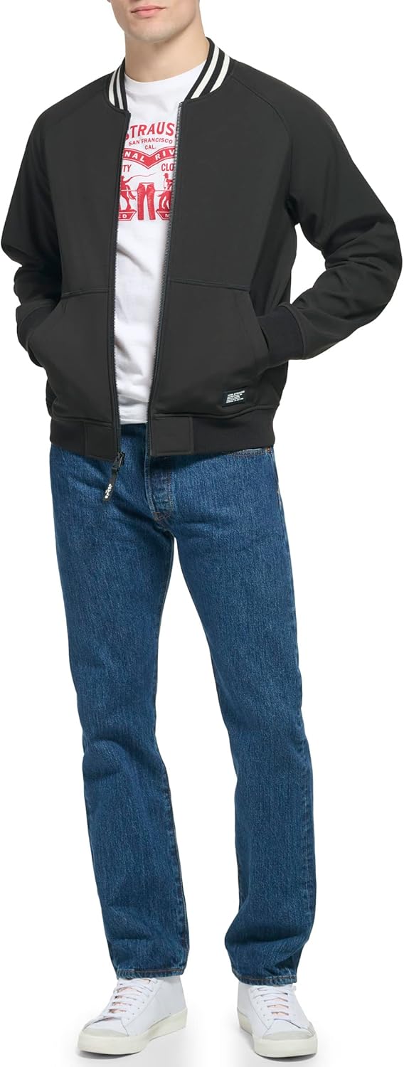 СТИЛЬНЫЕ ОСОБЕННОСТИ: Полосатый трикотажный воротник, фирменная символика Levi's на бегунке молнии спереди, фирменная нашивка Levi's на нижнем левом кармане. ФУНКЦИОНАЛЬНОСТЬ: застежка-молния по центру спереди, два нижних прорезных кармана, мягкие трикотажные манжеты, подол и воротник из эластичной резинки для комфорта. МАТЕРИАЛ: Гладкая на ощупь мягкая ткань устойчива к влаге и ветру, что делает ее идеальной курткой для ежедневного ношения. Сохранение тепла: эти куртки обеспечивают дополнительный внешний слой для дополнительного тепла и защиты от холода. Мода, на которую можно положиться: простой и удобный стиль