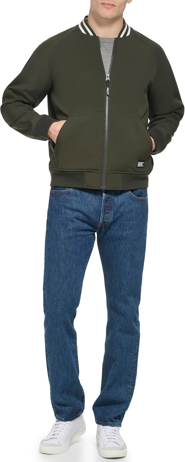 СТИЛЬНЫЕ ОСОБЕННОСТИ: Полосатый трикотажный воротник, фирменная символика Levi's на бегунке молнии спереди, фирменная нашивка Levi's на нижнем левом кармане. ФУНКЦИОНАЛЬНОСТЬ: застежка-молния по центру спереди, два нижних прорезных кармана, мягкие трикотажные манжеты, подол и воротник из эластичной резинки для комфорта. МАТЕРИАЛ: Гладкая на ощупь мягкая ткань устойчива к влаге и ветру, что делает ее идеальной курткой для ежедневного ношения. Сохранение тепла: эти куртки обеспечивают дополнительный внешний слой для дополнительного тепла и защиты от холода. Мода, на которую можно положиться: простой и удобный стиль