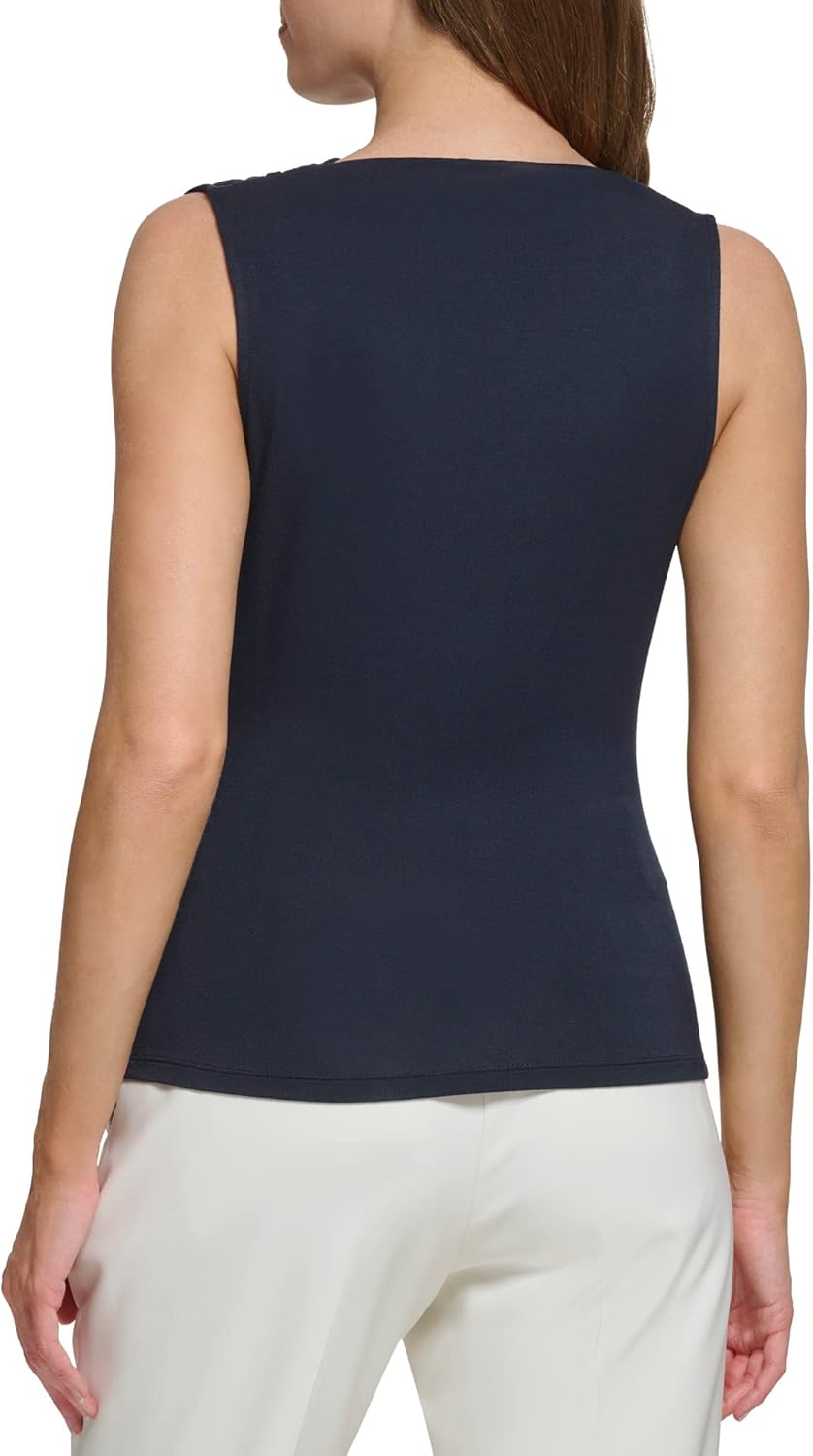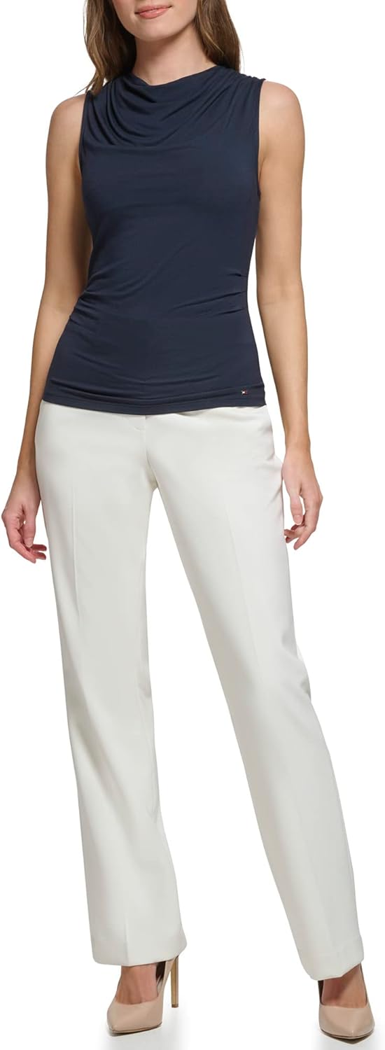 Эта женская рубашка Tommy Hilfiger представляет собой костюмный топ без рукавов с воротником-хомут из трикотажного джерси.