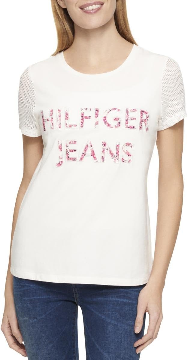 Tommy Hilfiger воплощает современный стиль в своей футболке с принтом «Hilfiger Jeans». Короткие свободные рукава подчеркивают непринужденный стиль. Круглый вырез горловины. Модель в стиле пуловера. Короткие контрастные рукава с перфорированной тканью. Печать «Hilfiger Jeans» спереди. Свободная посадка на груди и талии. Посадка на бедрах. Можно стирать в стиральной машине. Импортная модель.