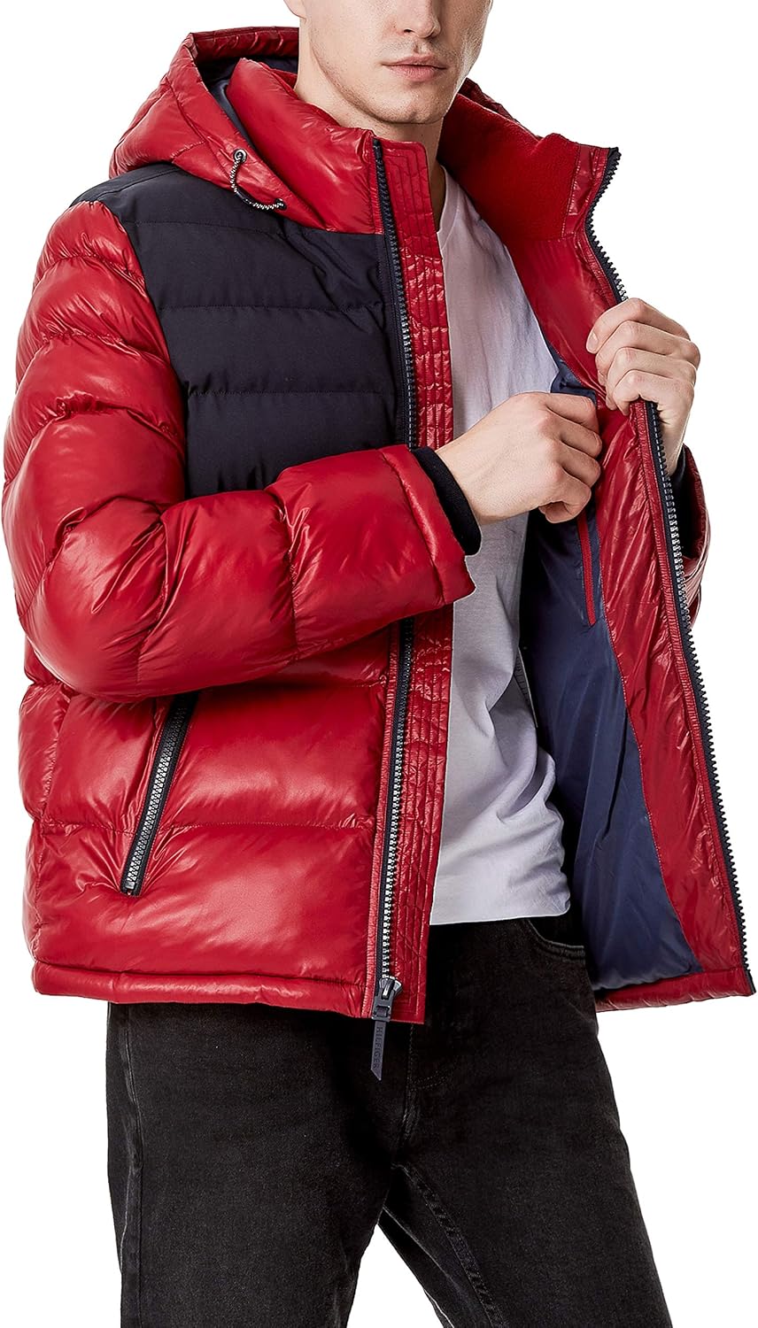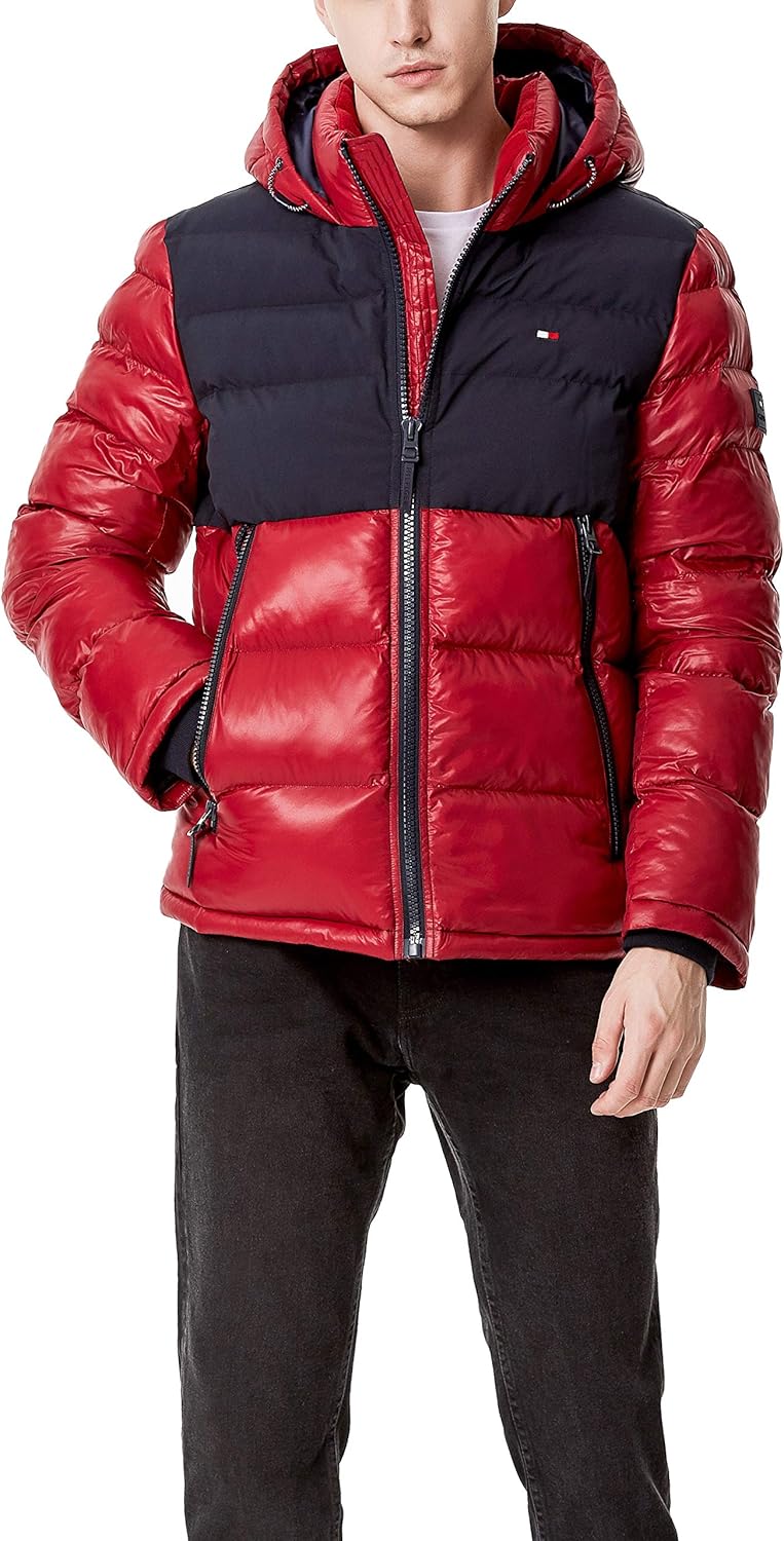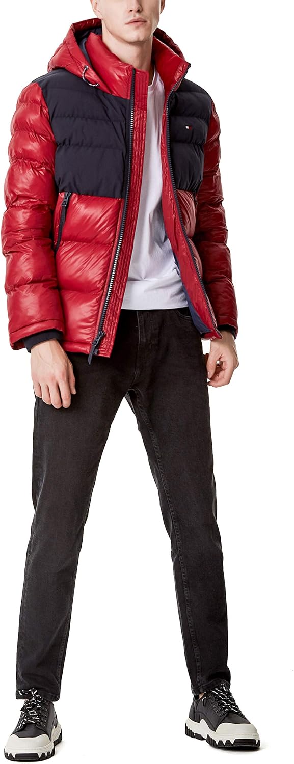 Мужская стеганая куртка с капюшоном Tommy Hilfiger, Navy/Red Two Tone