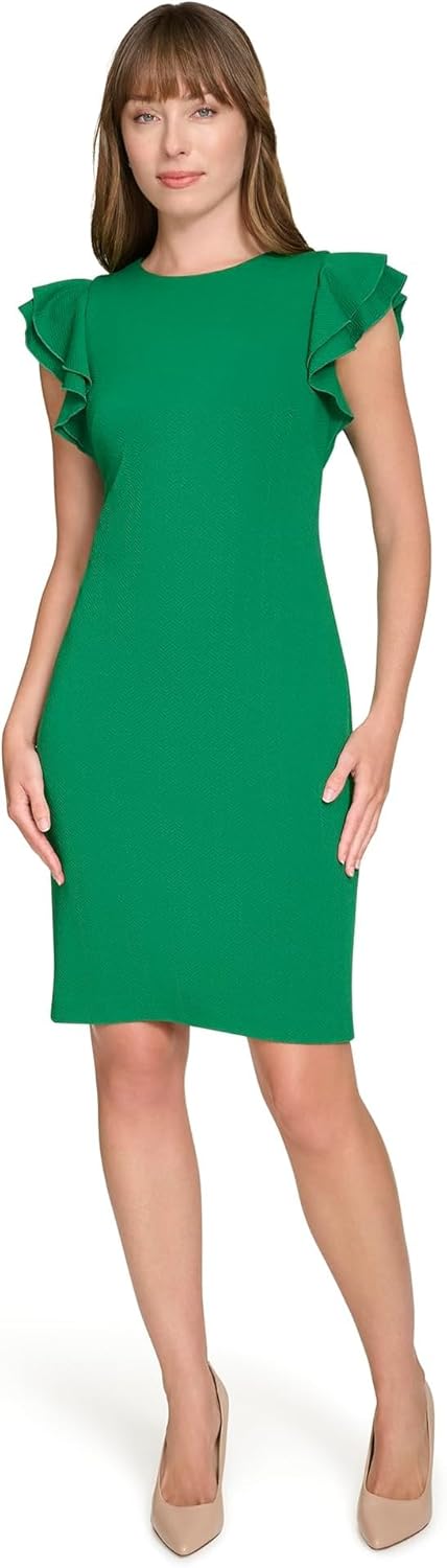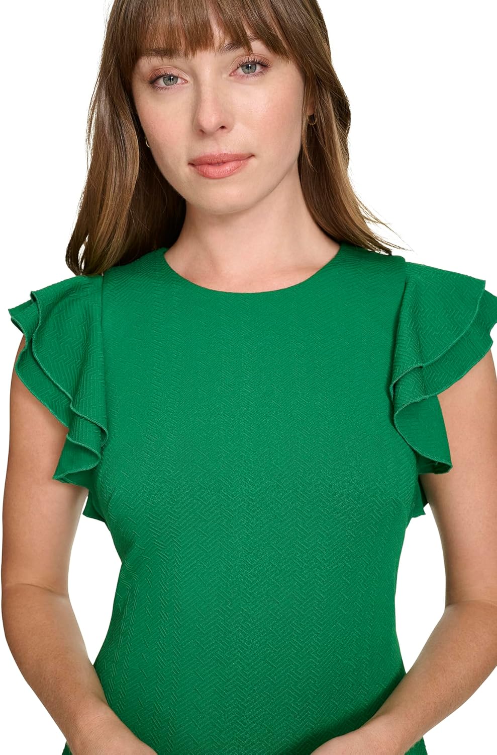 Это женское платье Tommy Hilfiger Plus Size с короткими рукавами-крылышками из ткани Scuba.