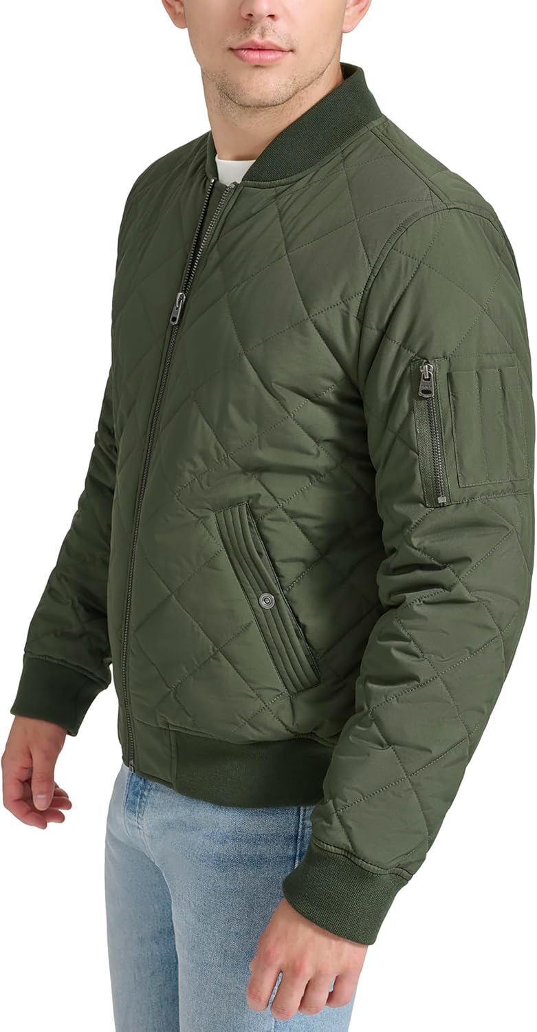 СТИЛЬНЫЕ ХАРАКТЕРИСТИКИ: Ромбовидная стеганая внешняя часть, мягкие манжеты и воротник в рубчик, красный логотип Levi's на нижнем левом шве. ФУНКЦИОНАЛЬНОСТЬ: Два нижних кармана на кнопках, один карман на молнии на рукаве, один внутренний карман для безопасности, застежка на молнии по центру спереди. УНИВЕРСАЛЬНОСТЬ: Дышащая ткань; Идеально подходит для дня и ночи; Отличный вариант для переходного периода.