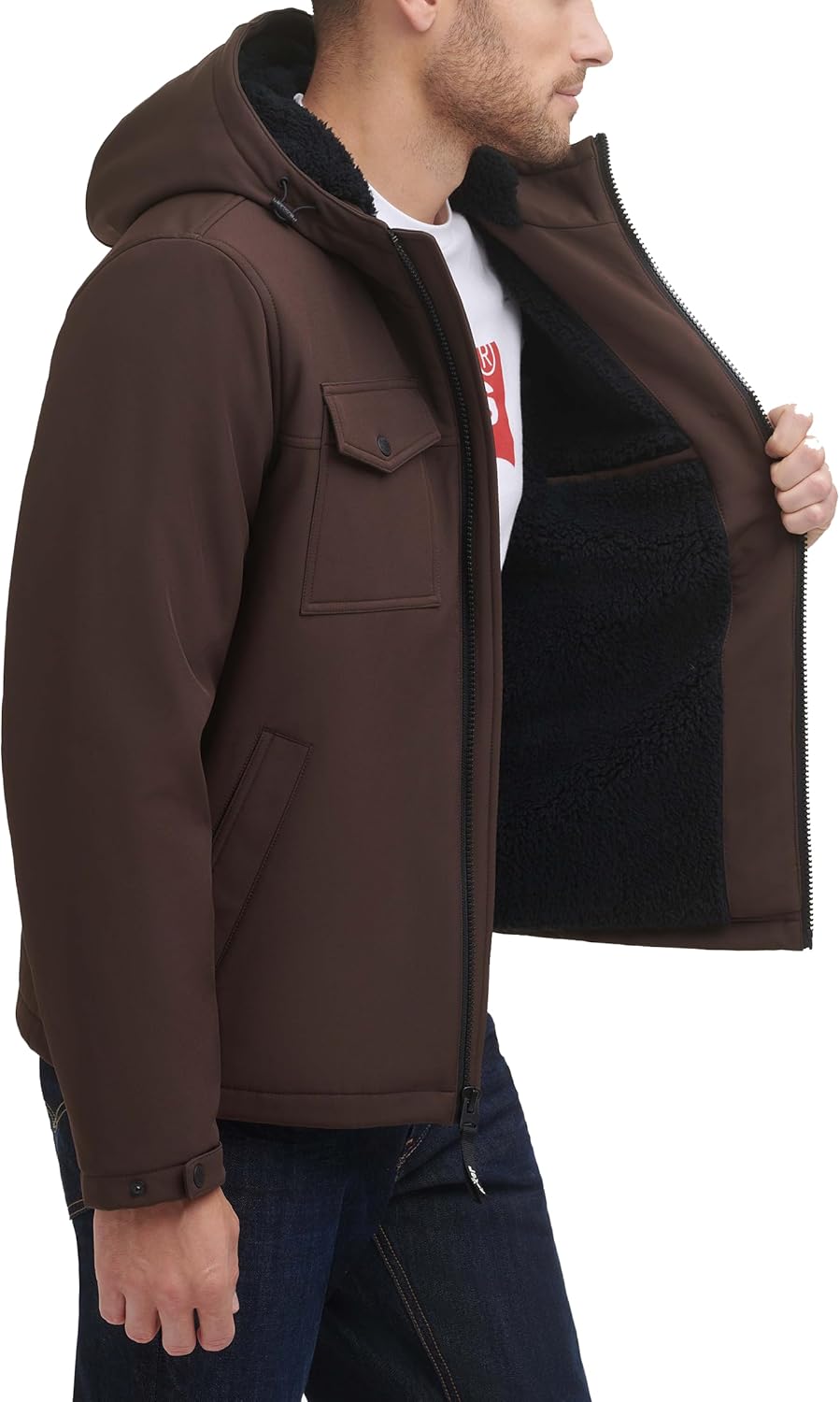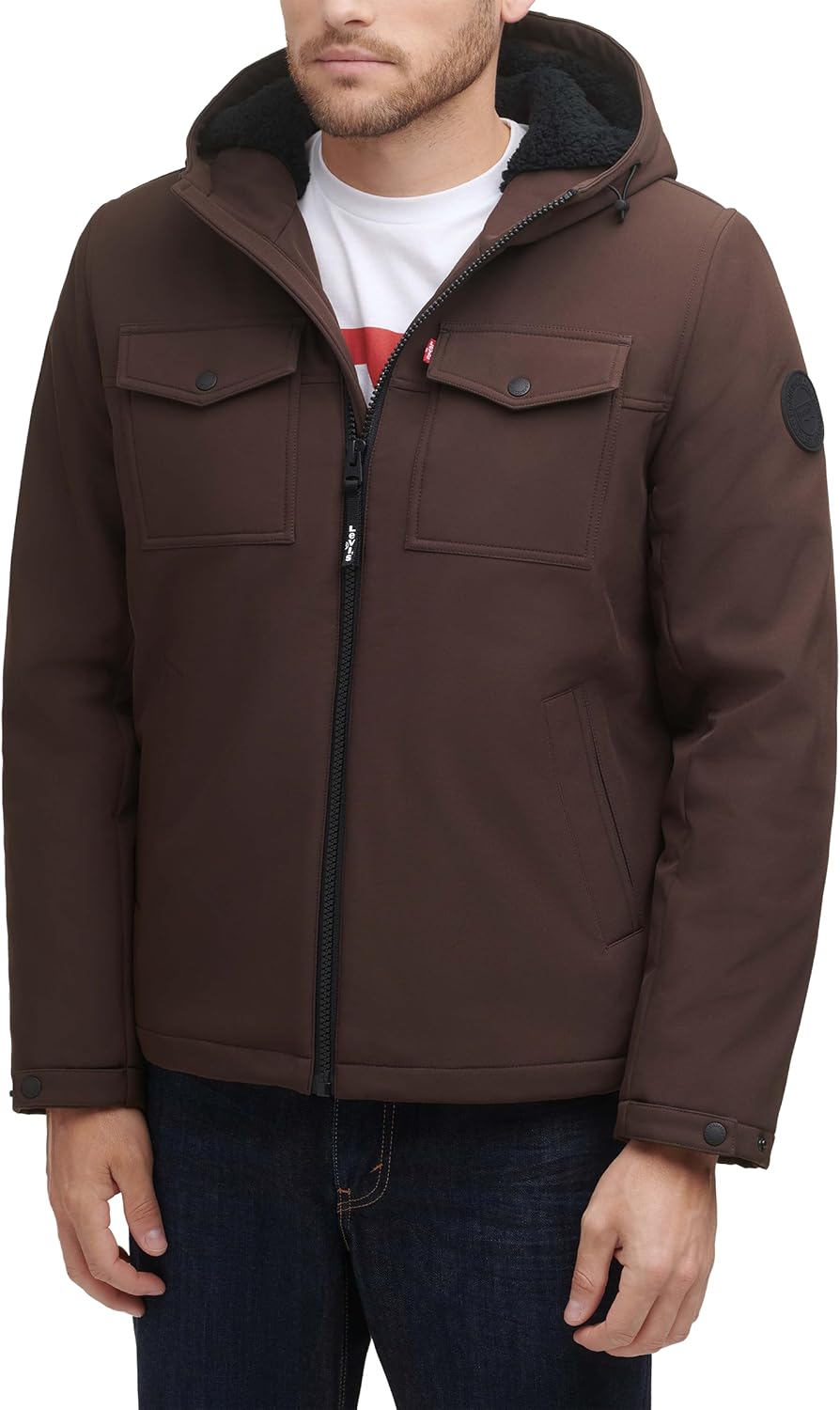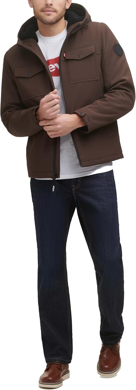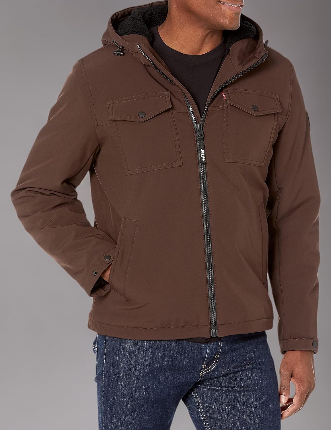 Мужская куртка Levi's Soft Shell с двумя карманами и капюшоном, Dark Brown Sherpa