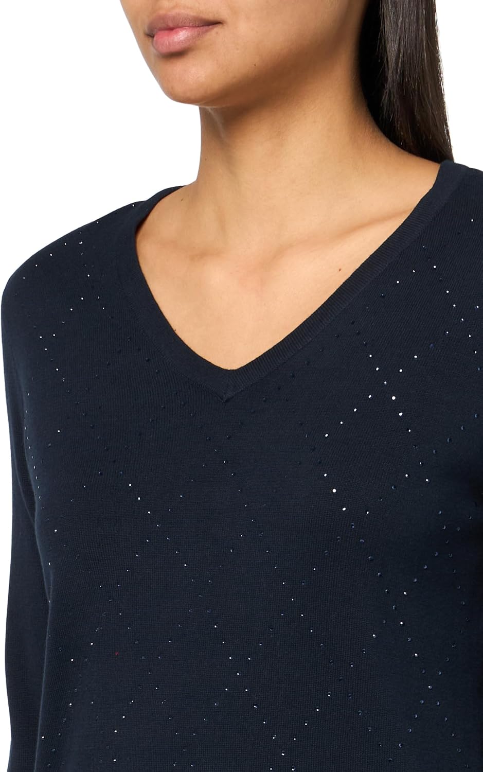 Этот женский спортивный свитер Tommy Hilfiger представляет собой пуловер с длинными рукавами и V-образным вырезом.
