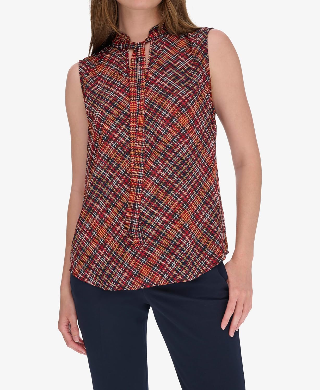 Женский клетчатый топ без рукавов с принтом от Tommy Hilfiger, Midnight Multi