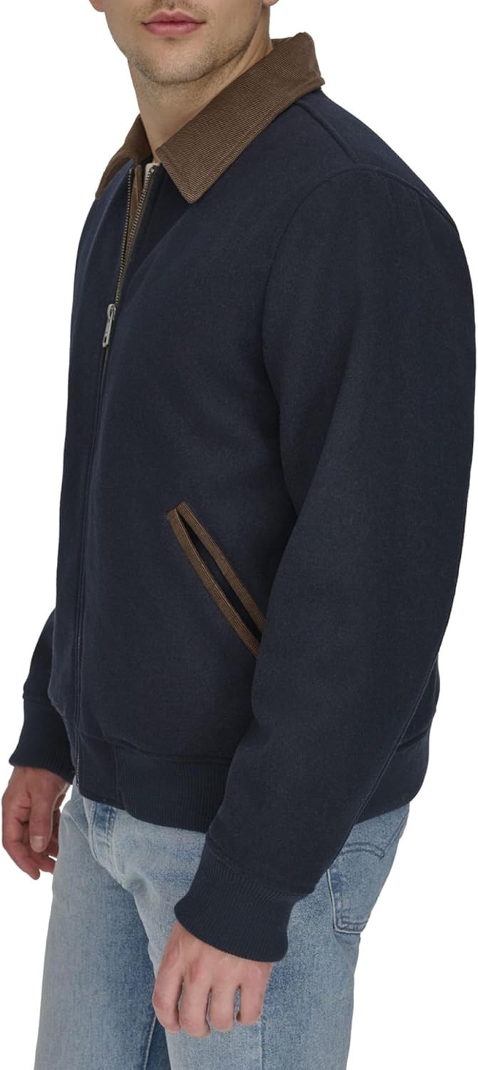 СТИЛЬНЫЕ ХАРАКТЕРИСТИКИ: куртка-бомбер в стиле вестерн из смесовой шерсти, отложной воротник, застежка-молния и тесьма из искусственной кожи, нашивка с логотипом Levi's на нижнем левом кармане. ФУНКЦИОНАЛЬНОСТЬ: застежка-молния по центру спереди, трикотажные манжеты и подол в рубчик, два нижних прорезных кармана, один внутренний защитный карман с отделкой из искусственной кожи. МАТЕРИАЛ: Основная часть из шерстяной смеси, внутренняя подкладка с ромбовидной стежкой для дополнительного тепла и долговечности. Сохранение тепла: эти куртки обеспечивают дополнительный внешний слой для дополнительного тепла и защиты от холода. Мода, на которую можно положиться: простой и удобный стиль