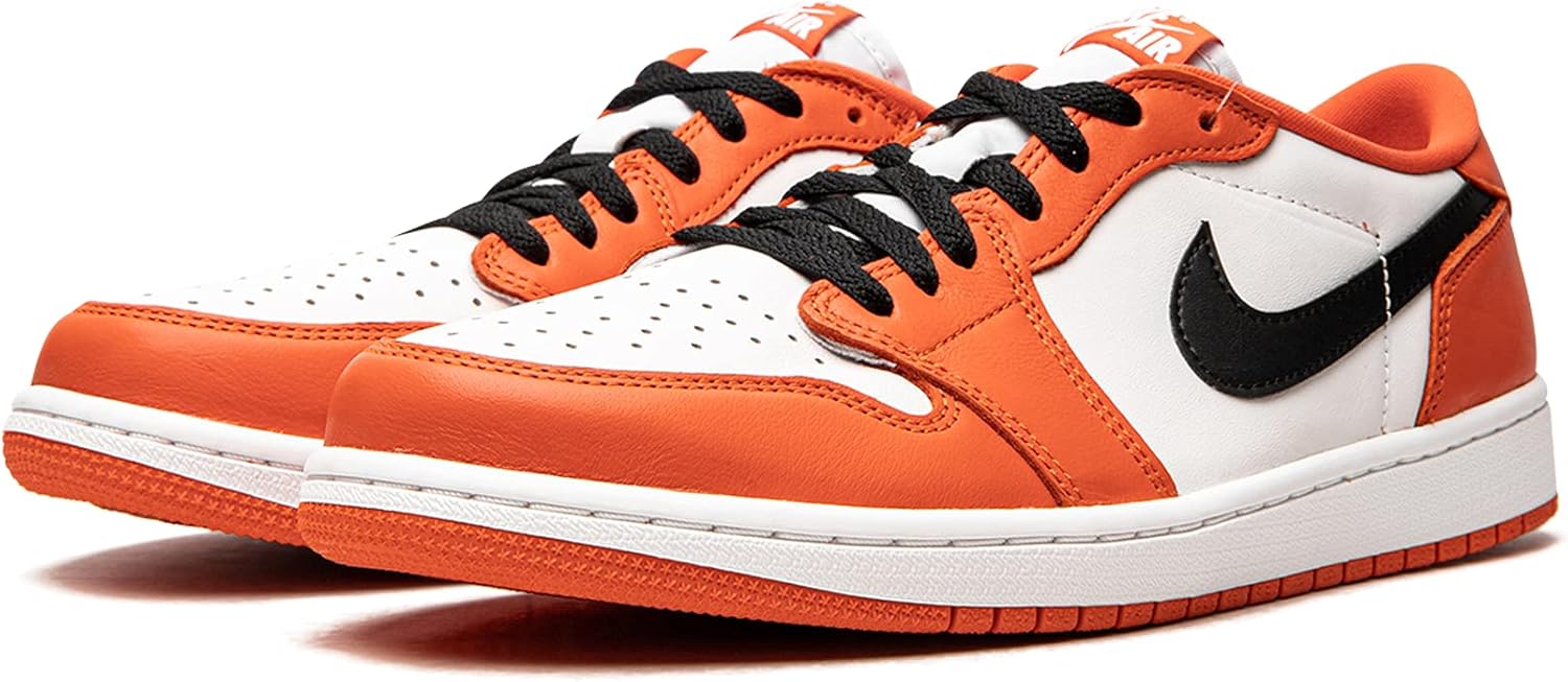 Air Jordan 1 Low OG «Starfish» - это первые именные кроссовки Майкла Джордана с низким верхом, выпущенные в августе 2021 года и отдающие дань уважения уже ставшей классической расцветке. Несмотря на свое прозвище, «Морская звезда» отсылает к популярной модели Air Jordan 1 «Расколотая спинка», а именно к Jordan 1 «Обратная расколотая спинка» 2016 года с ее черно-бело-оранжевой цветовой гаммой. Кроме того, Air Jordan 1 Low OG - это практически точная копия оригинальной версии баскетбольных кроссовок с низким верхом 1985 года. Что касается модели «Морская звезда», то на перфорированном носке и средней части присутствует белая кожа. Накладные панели отделаны контрастной кожей цвета морской звезды.