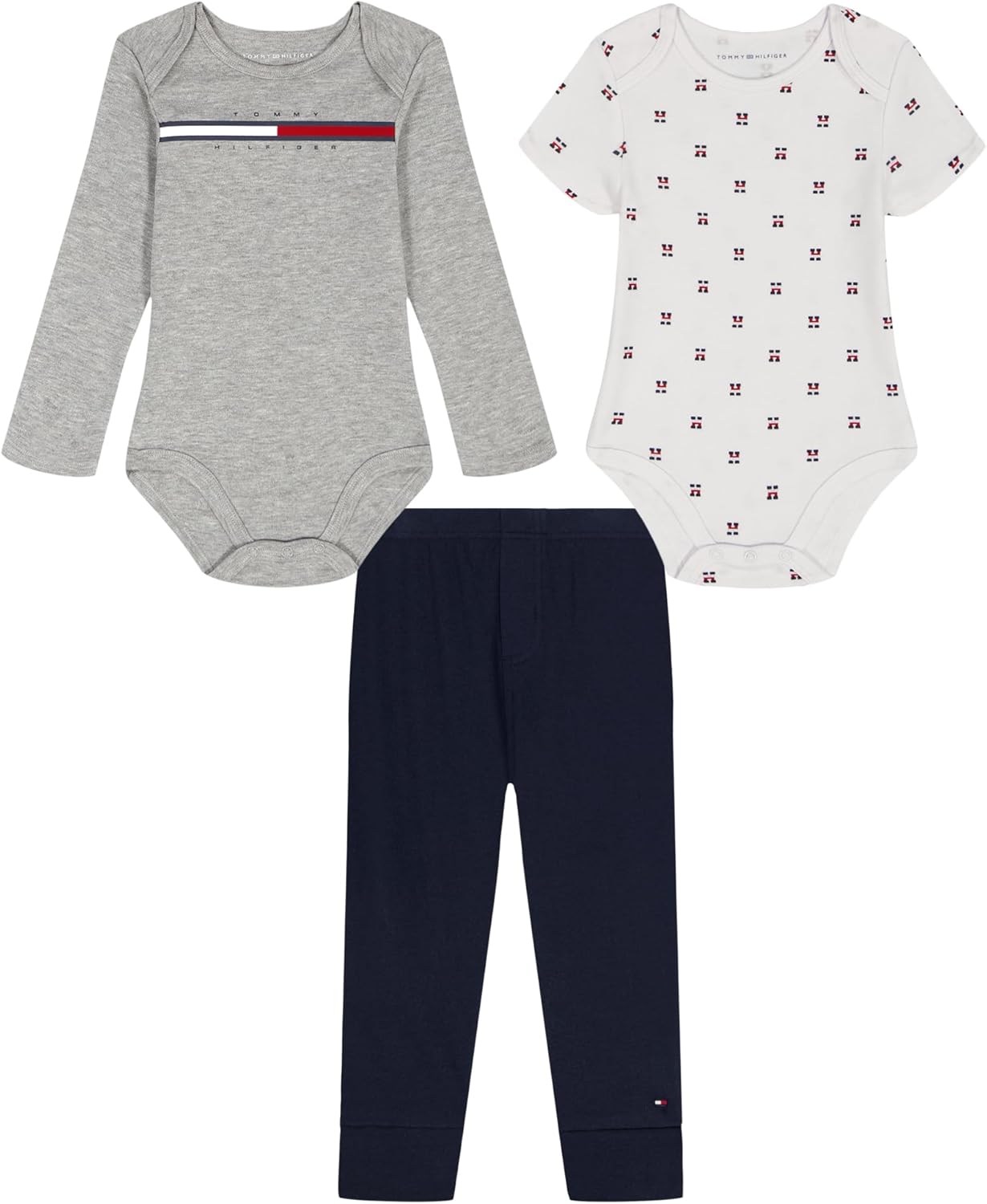 Tommy Hilfiger baby-boys 2 Creeper and Pant Set, Heather Mist/Bright White/Navy Blazer