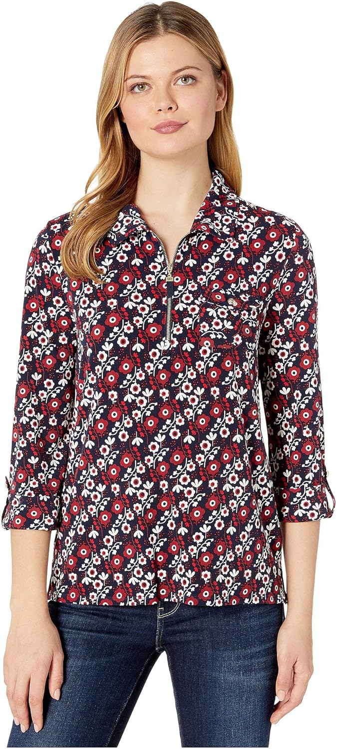 Эта женская спортивная трикотажная рубашка Tommy Hilfiger с застежкой-молнией и принтом.