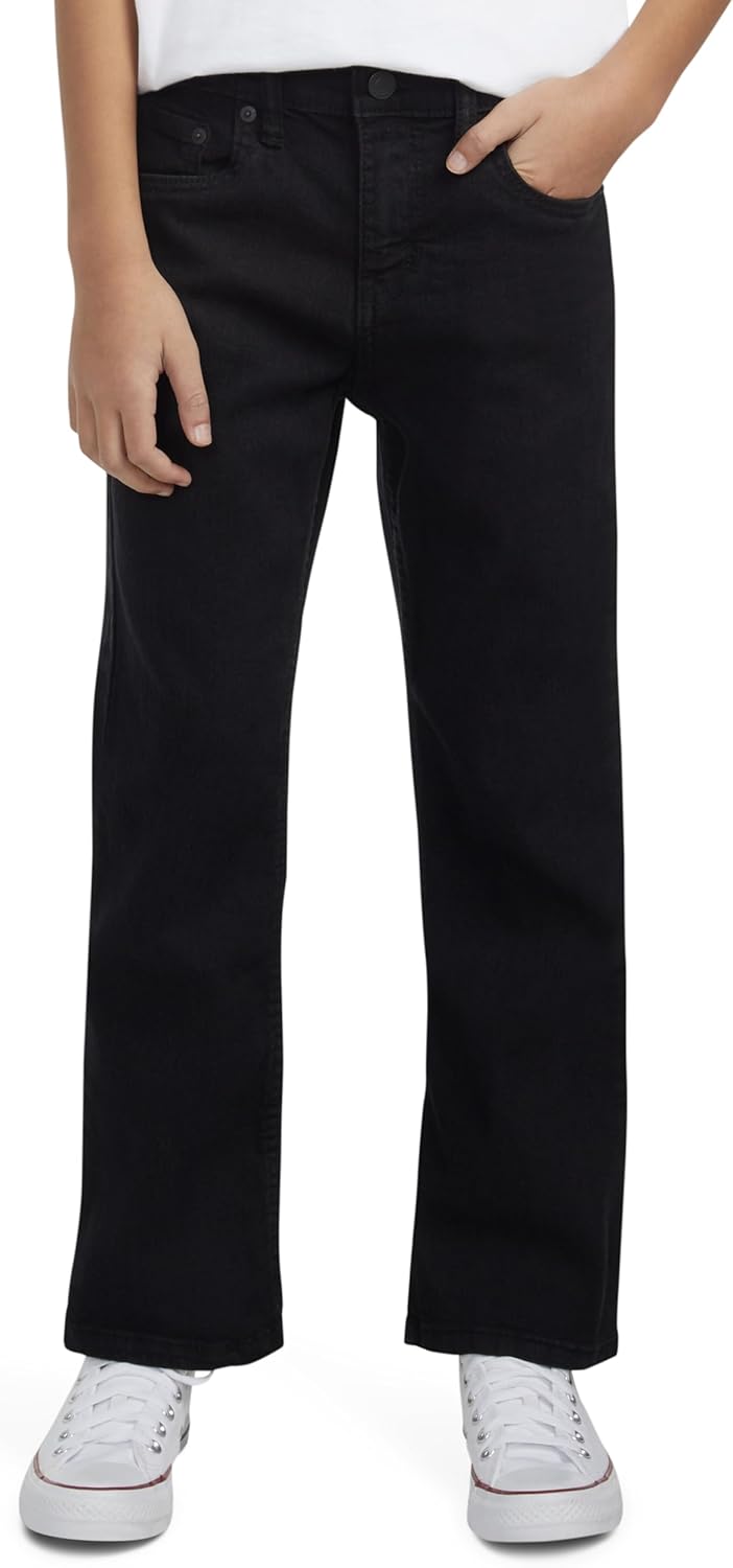 ・ЛЕГЕНДАРНОЕ КАЧЕСТВО: Изготовлены из качественного денима Levi's с добавлением эластичности для максимальной подвижности. ・СОЗДАНО ДЛЯ КОМФОРТА: Регулируемый пояс обеспечивает индивидуальную посадку и комфорт по мере роста ребенка. ・ФИРМЕННЫЙ дизайн Levi's с 5 карманами. ・ДИЗАЙН НА ВСЕ ВРЕМЕНА: Создайте стильный и непринужденный образ в стиле 90-х с этой моделью в стиле ретро, представляющей собой современную интерпретацию винтажного кроя с простым силуэтом, классической средней посадкой и расклешенными брючинами, идеально подходящими для ношения с сапогами. ・Для детей старшего возраста (размеры 8-20) застегивается спереди на пуговицы. Для детей младшего возраста застегивается спереди на крючок и перекладину.