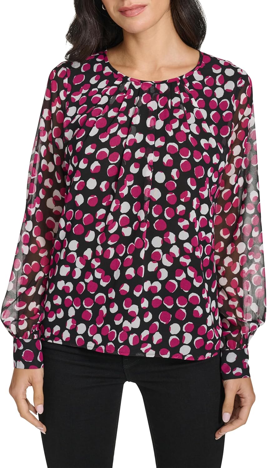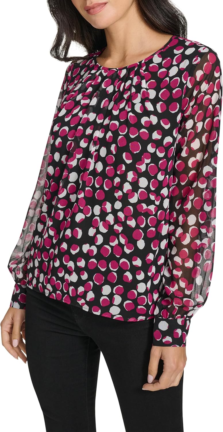Женская блузка с длинным рукавом Calvin Klein, Blk/Mulbry