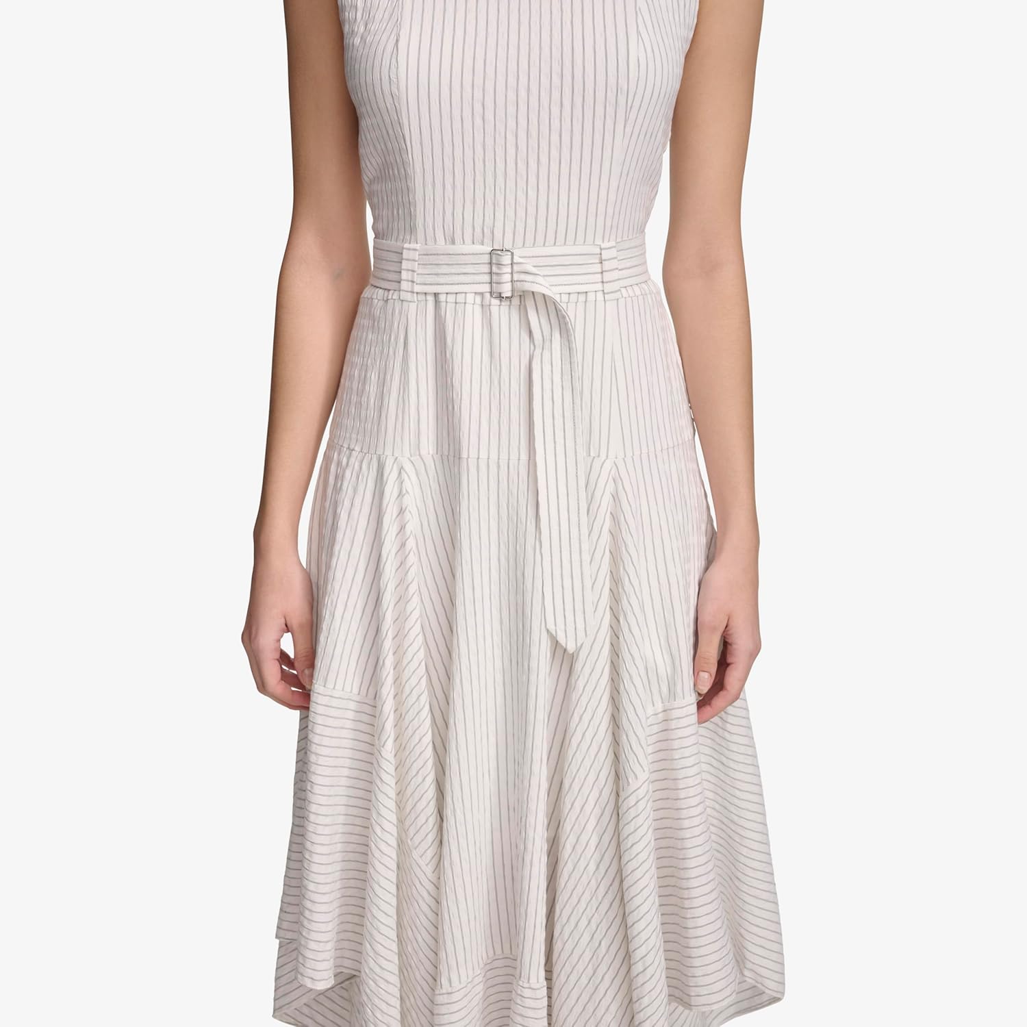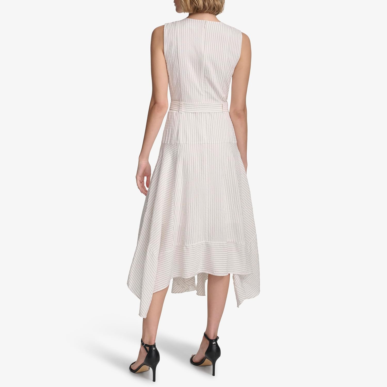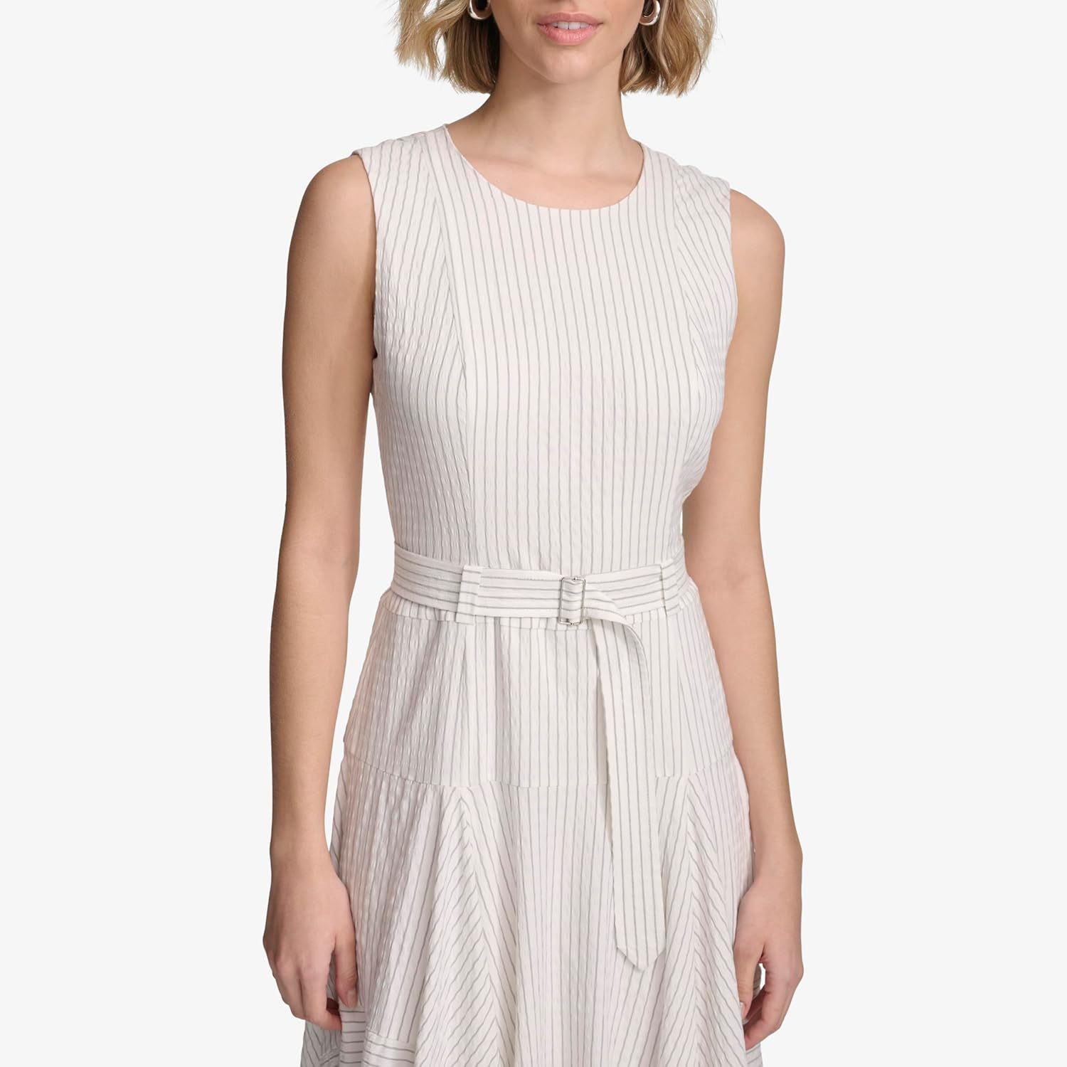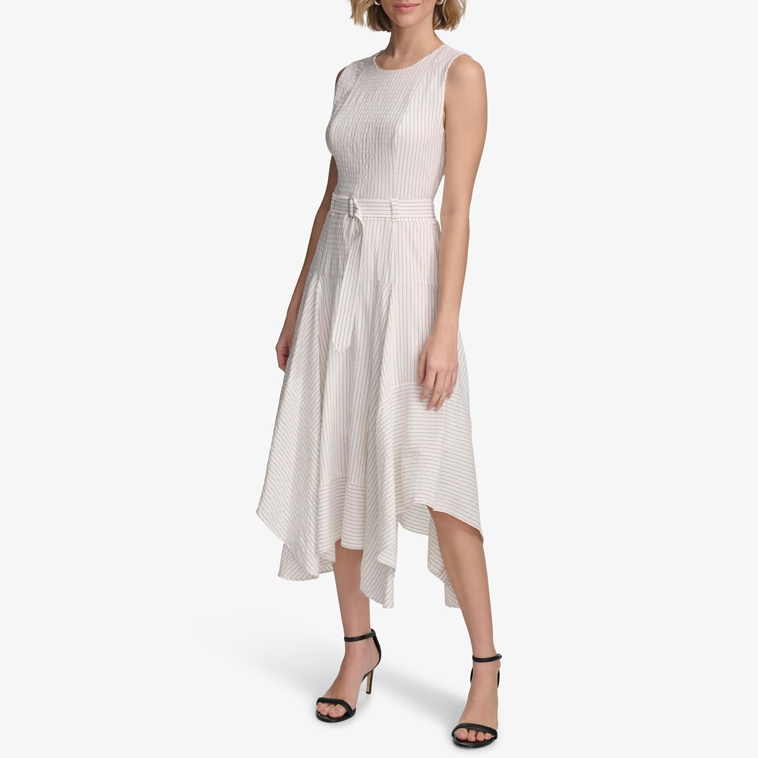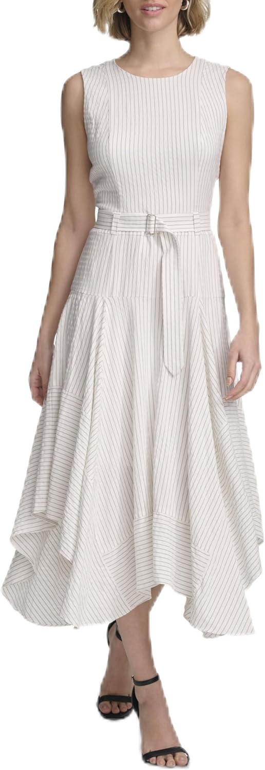Платье-рубашка Calvin Klein из эластичного льна с поясом, Soft White/Black Combo