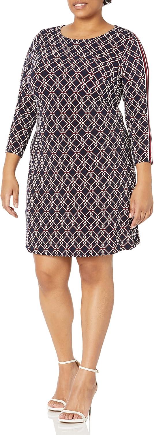 Женское универсальное платье-трапеция Tommy Hilfiger с рукавами 3/4, Sky Captain Multi