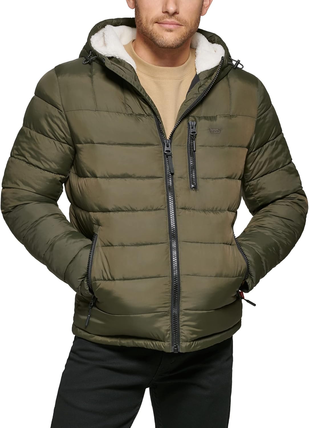 Мужская стеганая куртка Levi's с капюшоном на подкладке из шерпы, Olive