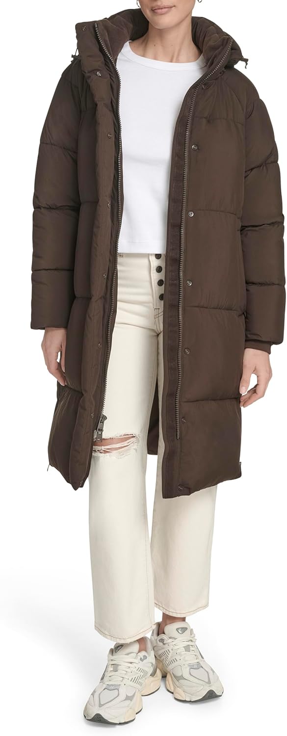 Женская стеганая куртка Levi's Cloud Puff с капюшоном средней длины, Coffee
