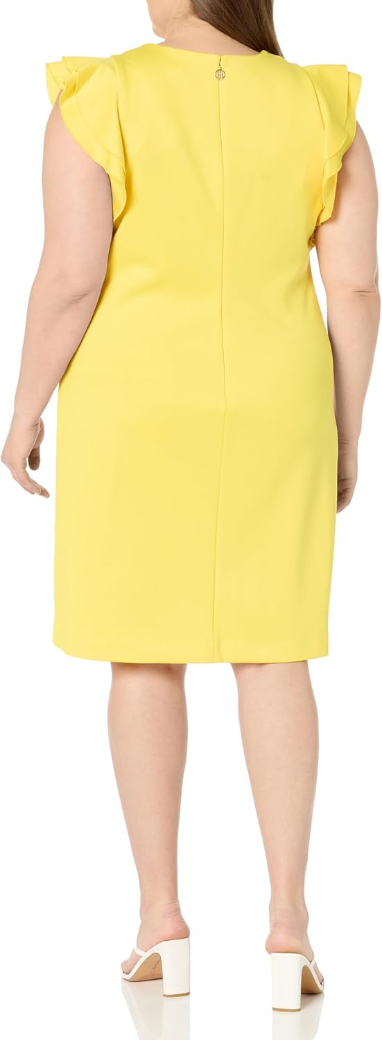 Это женское платье Tommy Hilfiger Plus Size с короткими рукавами-крылышками из ткани Scuba.