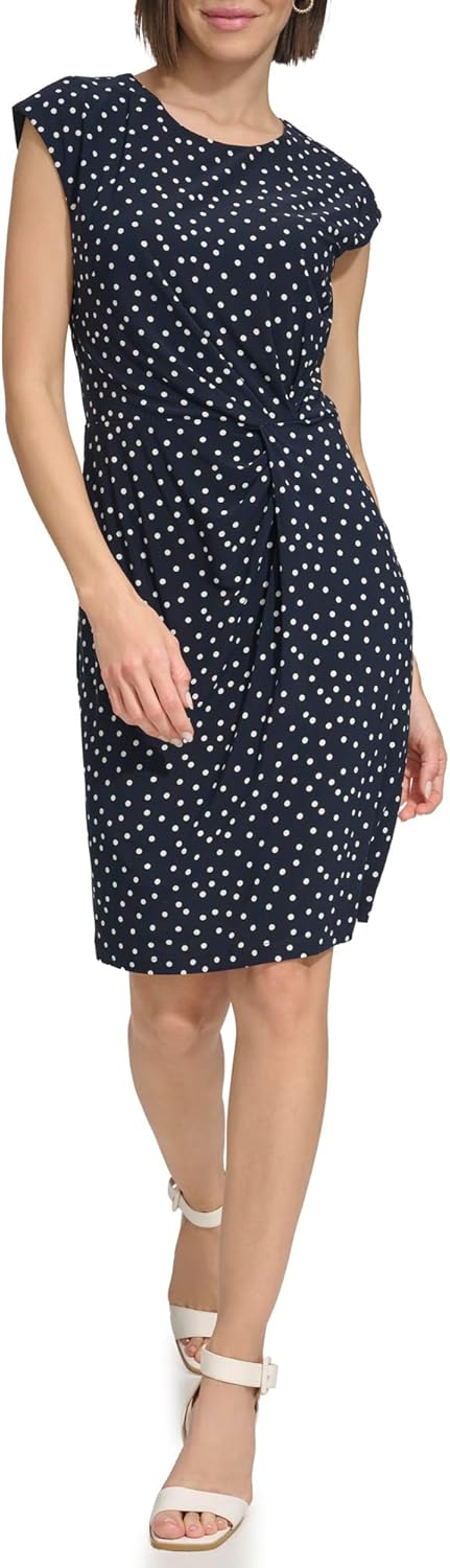 Необходимая вещь в путешествии: возьмите это платье с собой на выходные или в деловую поездку; ткань из смеси полиэстера и спандекса делает его неприхотливым в уходе предметом гардероба.