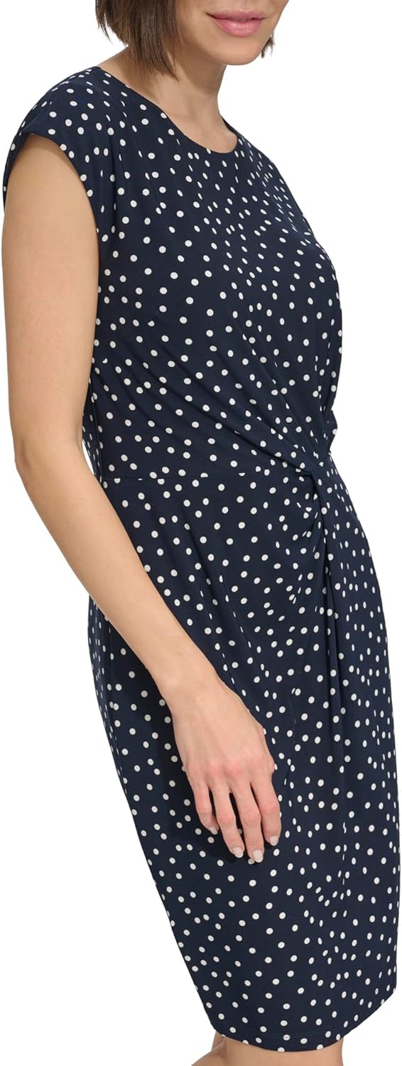 Это женское платье Tommy Hilfiger с коротким рукавом, из матового трикотажного полотна, с узлом на талии.