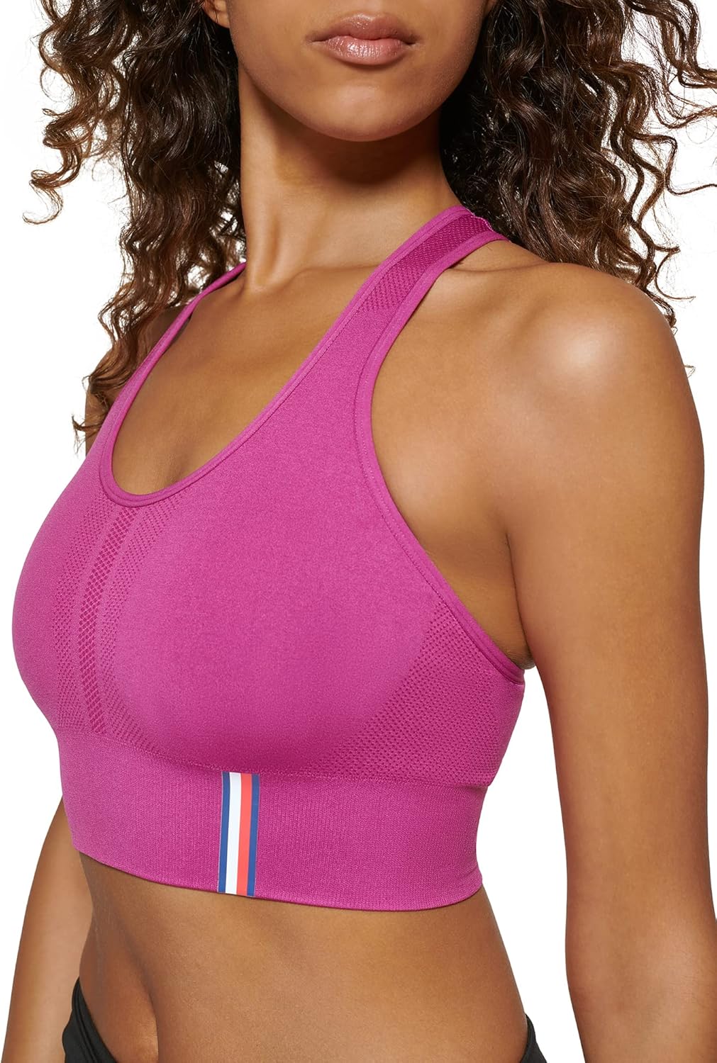 Подчеркивающая фигуру посадка: удлиненный спортивный бюстгальтер с круглым вырезом помогает сделать талию тоньше, обеспечивая форму и приподнимая фигуру, при этом обеспечивая максимальную свободу движений и комфорт.