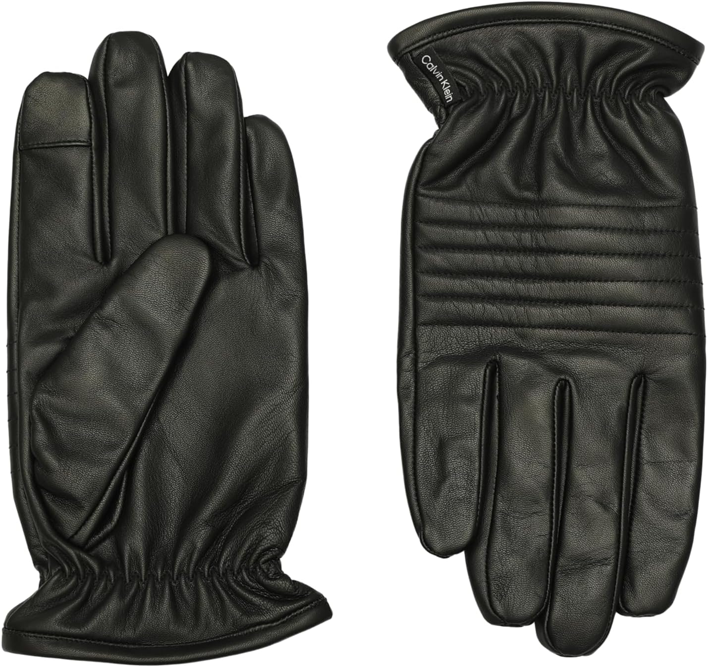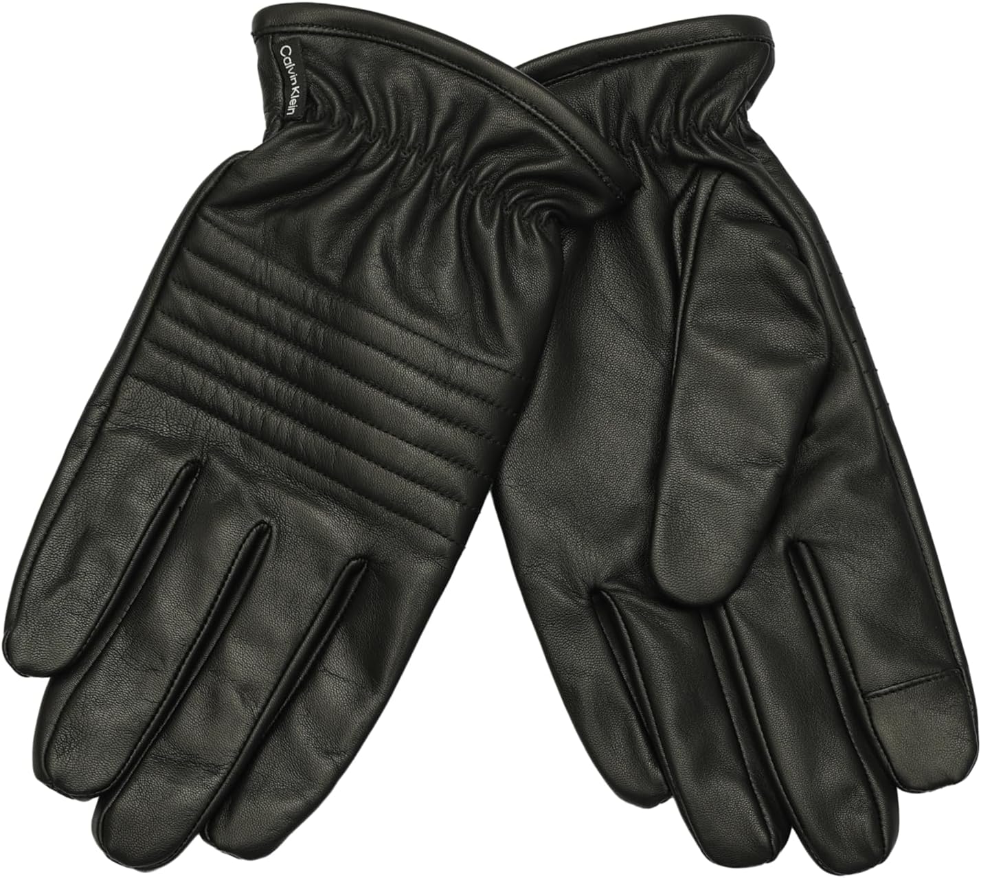 Мужские стеганые кожаные перчатки Calvin Klein. Эти стильные перчатки защищают от холода и обеспечивают удобный доступ к сенсорным экранам.